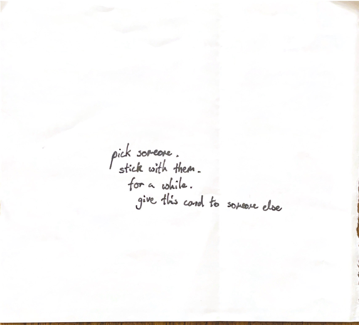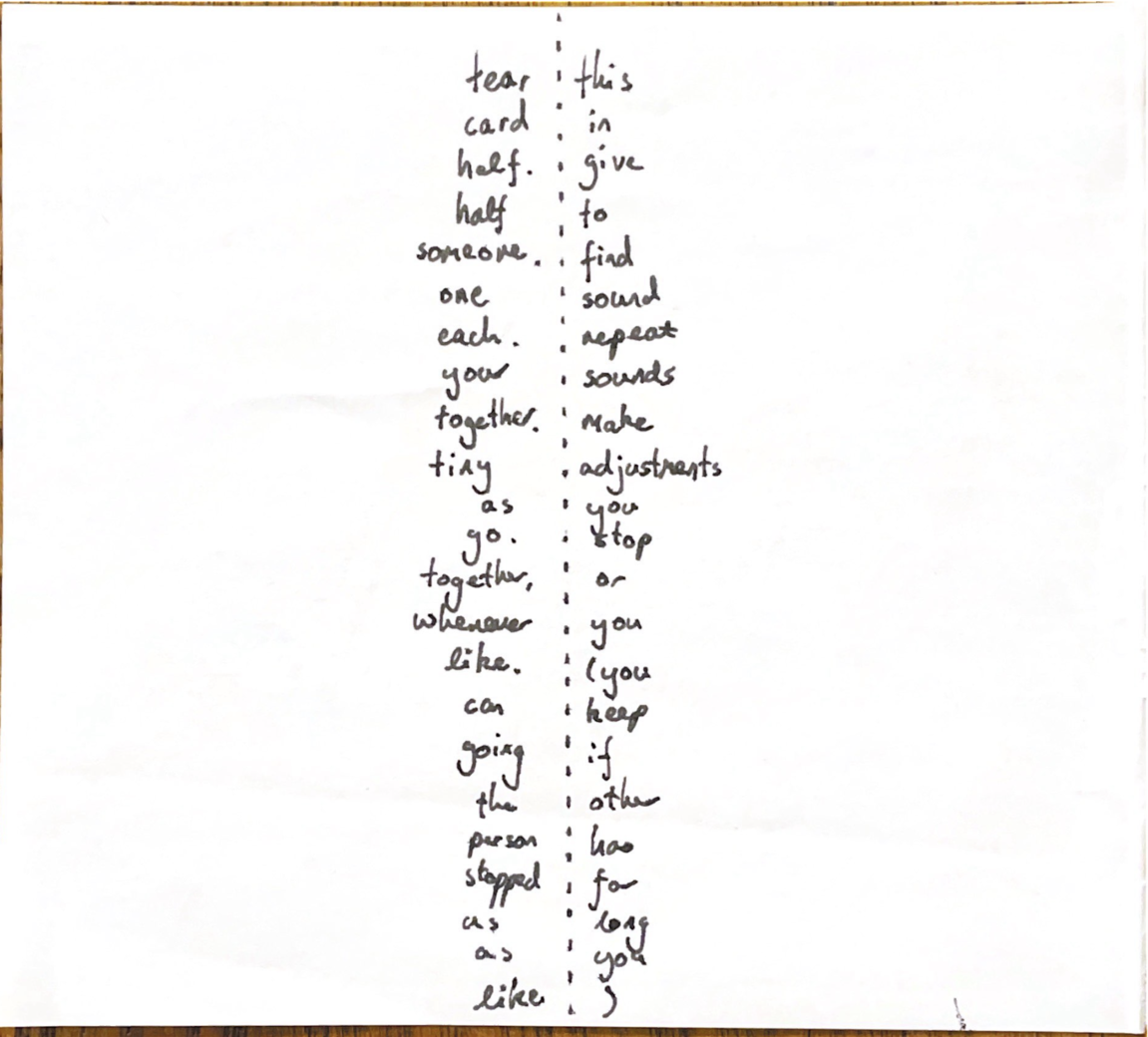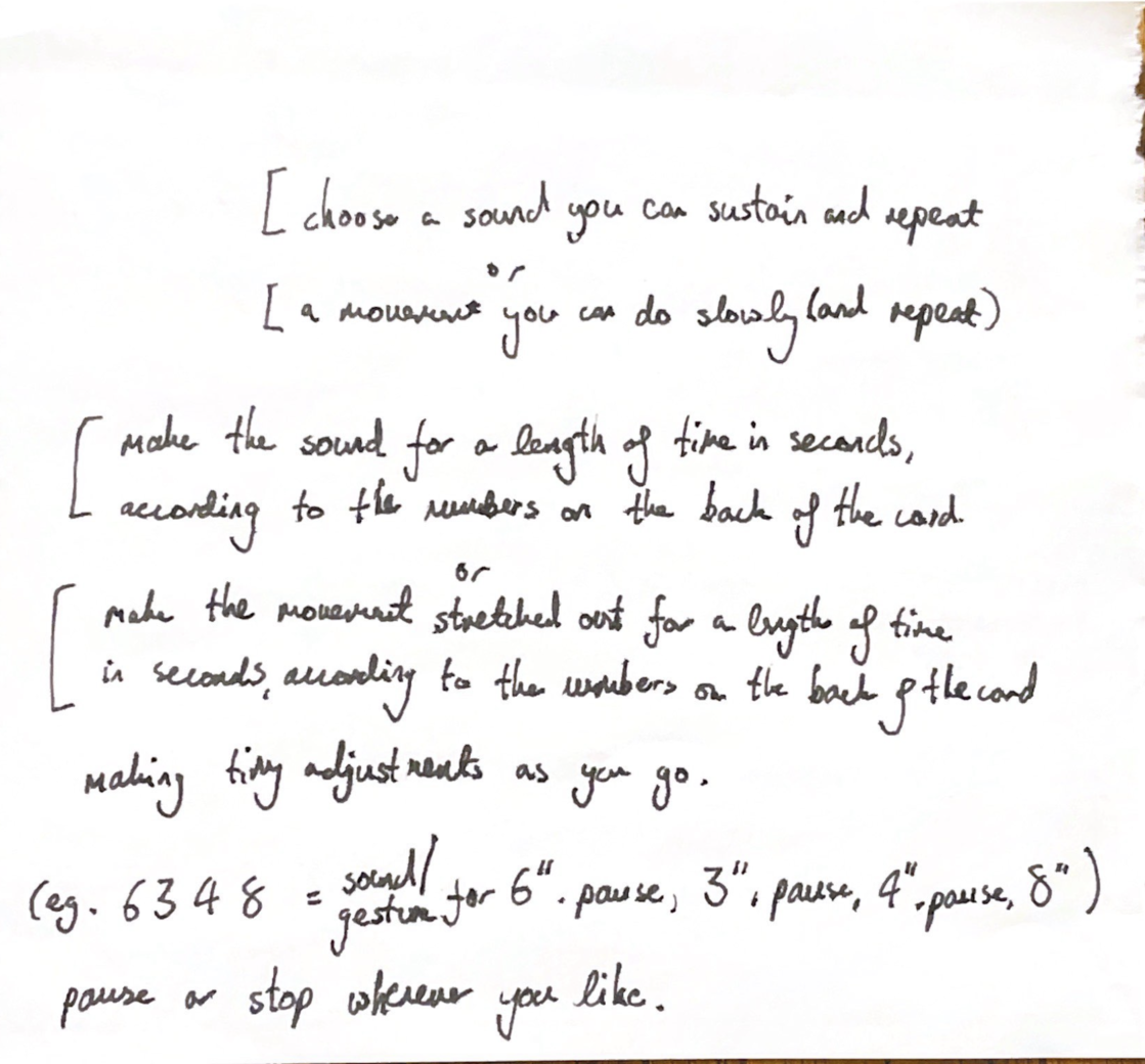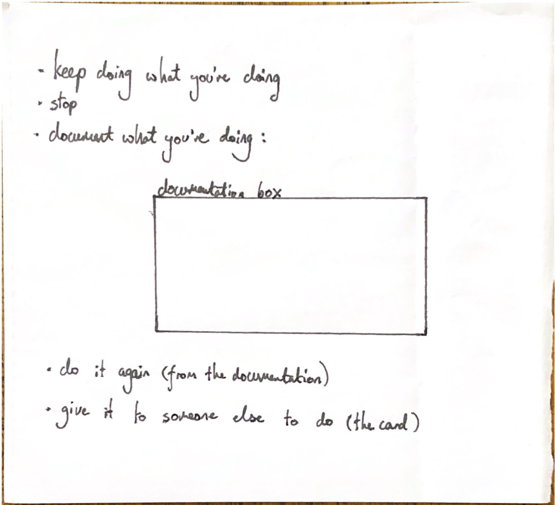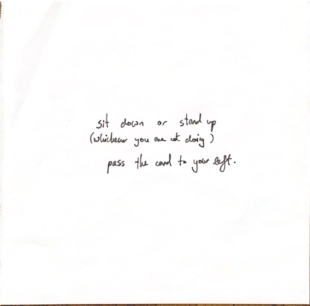 i started to see the instructions as possibilities for setting a process in motion, as cards would be passed around and performed multiple times by others.