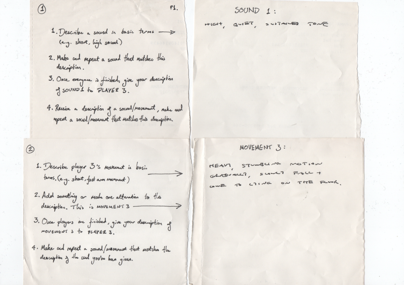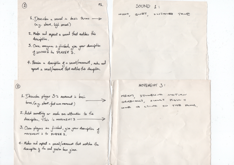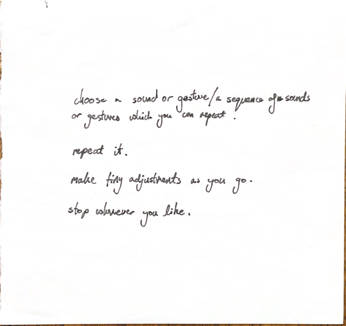 for musicians who are used to following scores (even experimental ones), an instruction like 'come up with a movement that you can repeat' might be more easily engaged with than if the instruction was verbal.