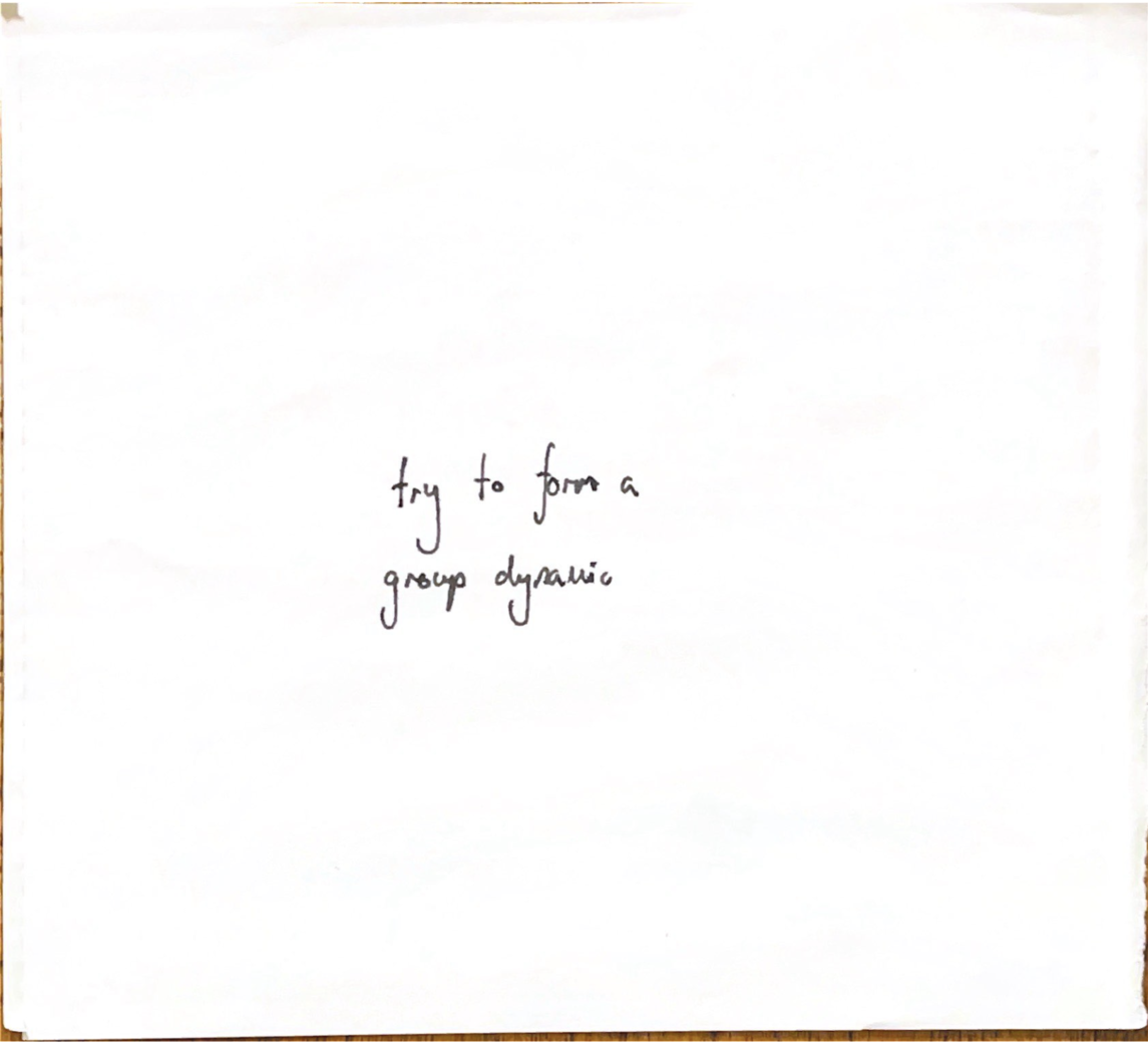during this time, the focus was not so much on arriving at a piece, as much as being together as a group, trying anything and everything. seeing what material stands out.