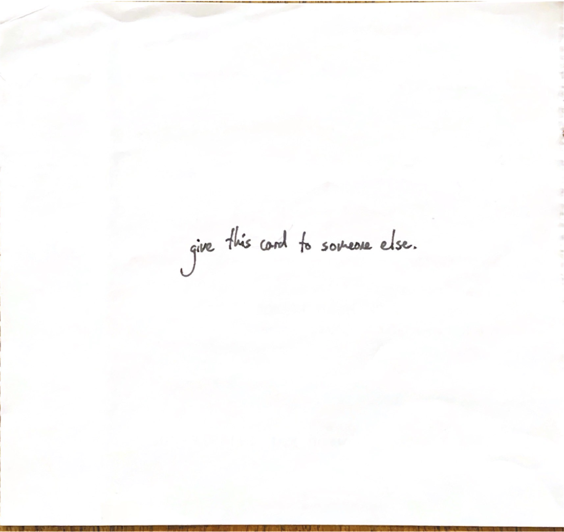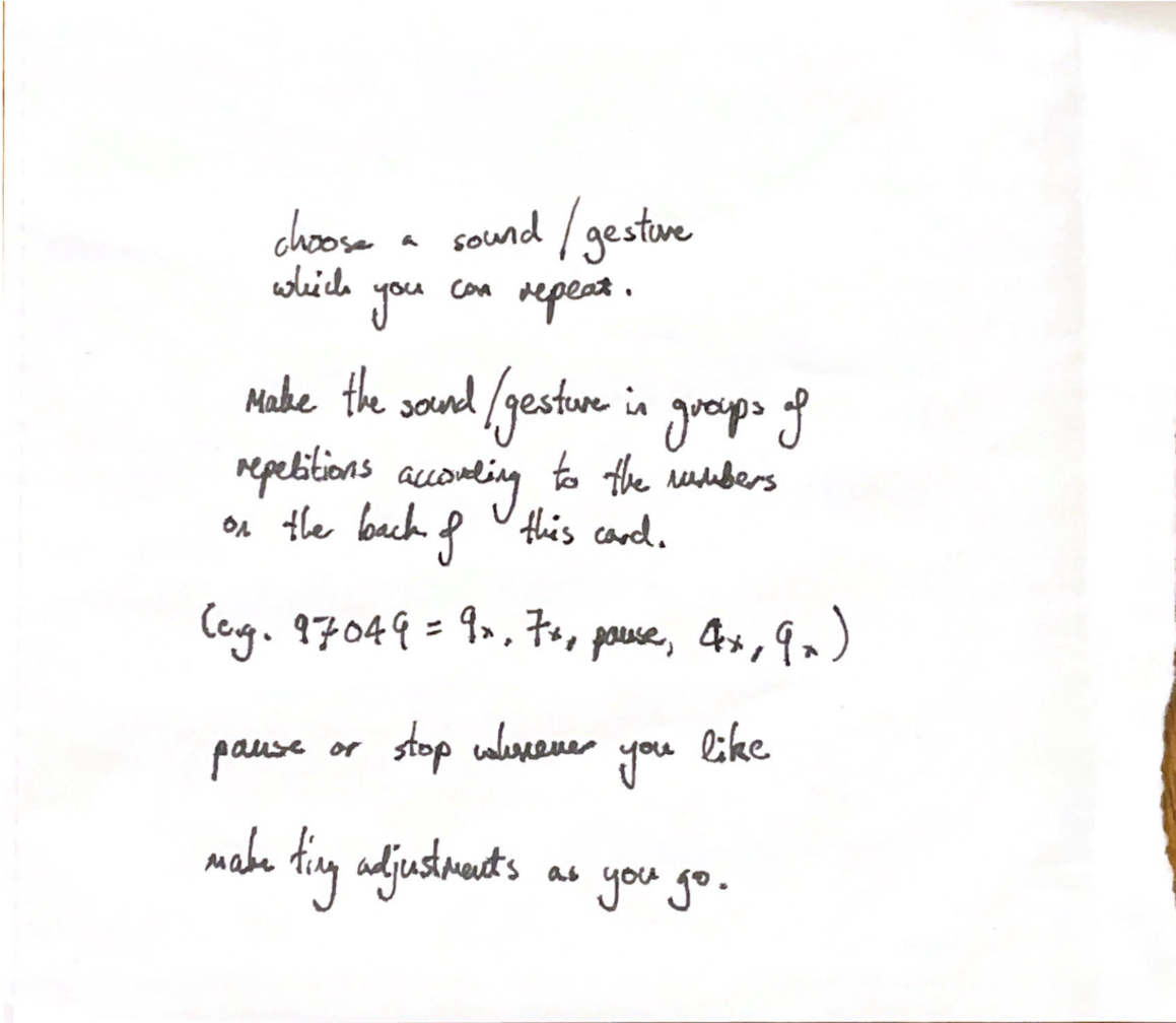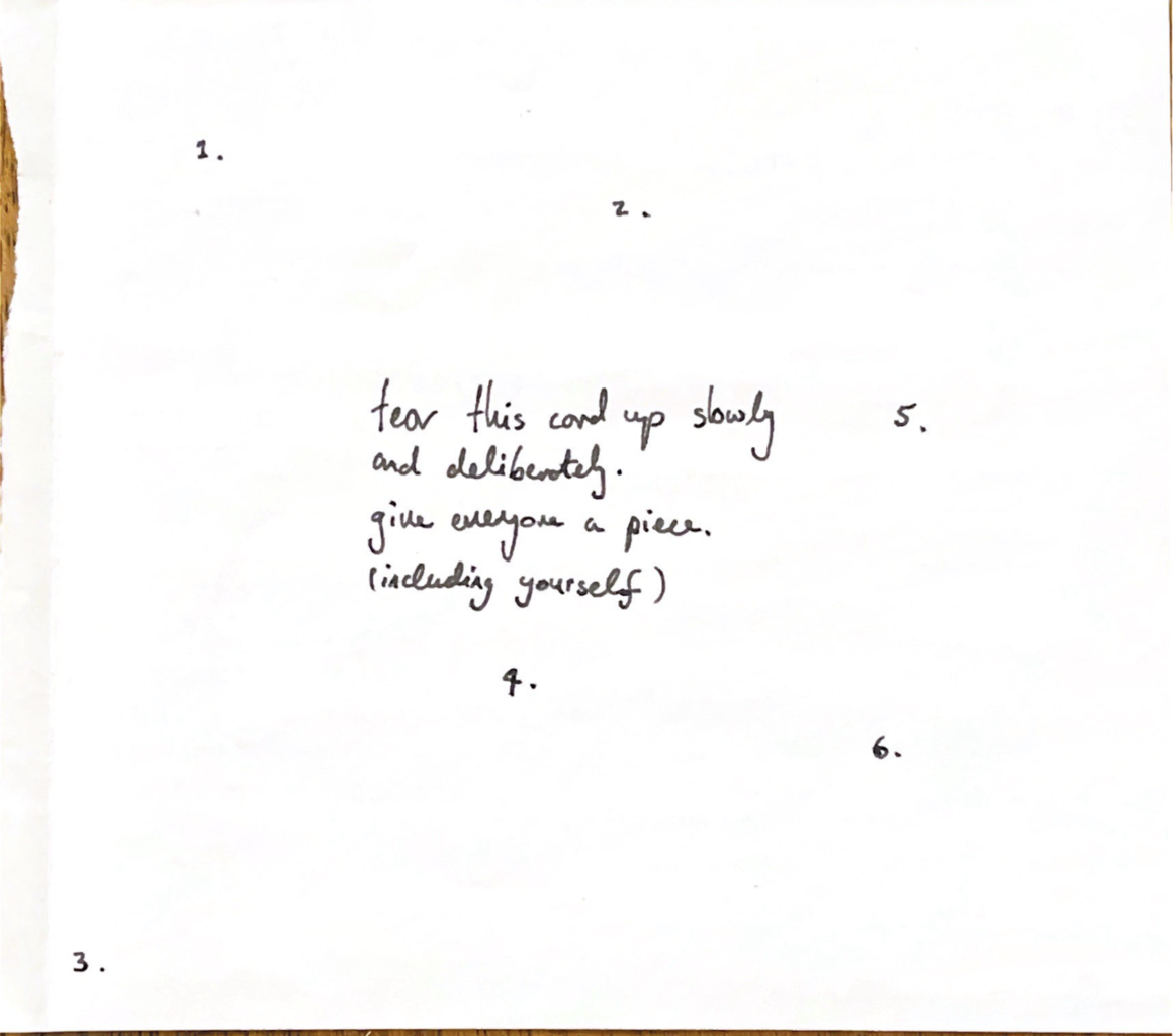 i started to see the instructions as possibilities for setting a process in motion, as cards would be passed around and performed multiple times by others.