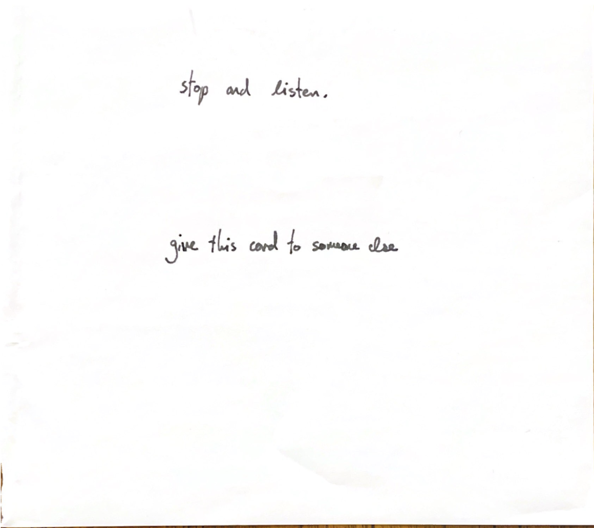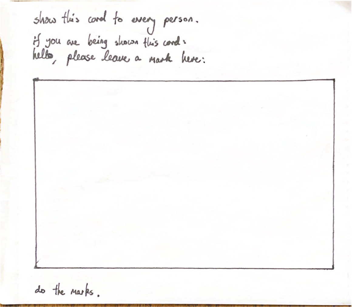following our discussion after the previous session, i began experimenting with the individual, physical cards as spaces for open instructions, or as spaces for writing.