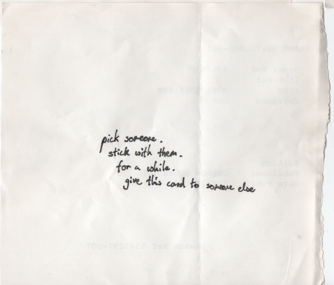 writing something down pinpoints one thing, making it more selective. this is the opposite of what the cards had been previously: an inundation of instructions.