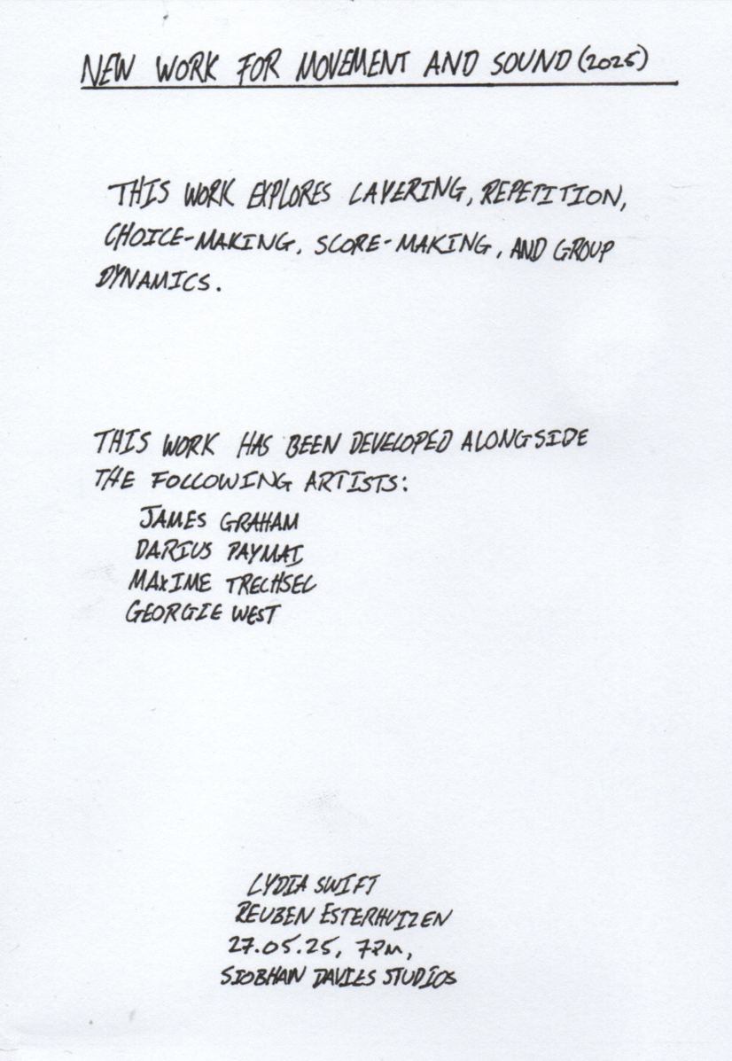 the other important part of the rehearsal process was just doing it again and again - trying different things every time. we wanted to explore the possibilities of this practice and inhabit it for longer.