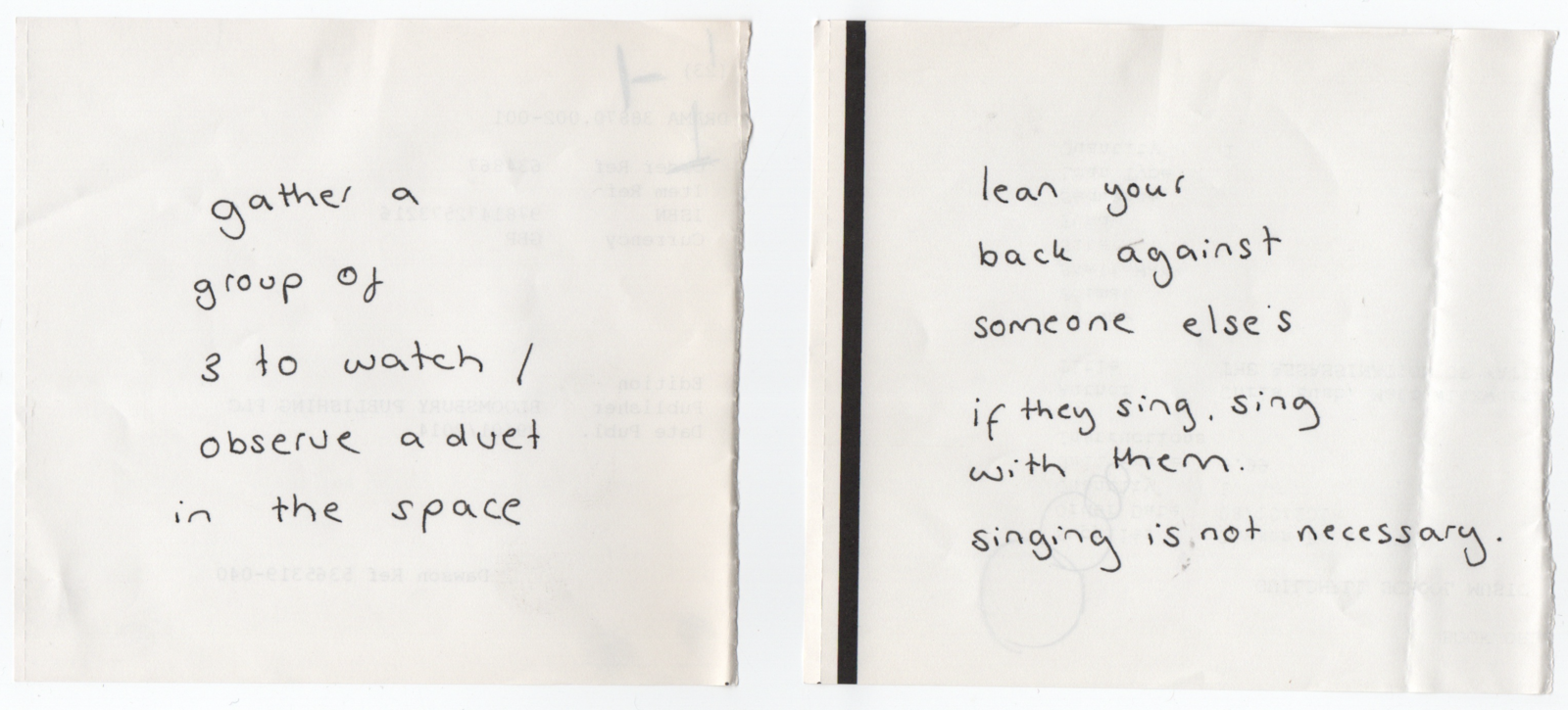 part of the audience will be able to read the instructions we were following, which creates an interesting texture.
