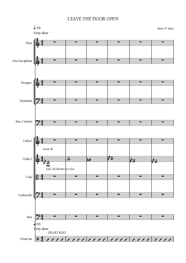 To facilitate this adjustment, I designed an exercise in which I reduced my leading and suggested material to the bare minimum, pushing the ensemble to rely solely on listening and generating ideas together. To do this, I transformed Leave the Door Open, originally a regularly notated piece, into a two-line score that leaned towards open improvisation. While the musical results aren't yet entirely satisfying, the process has encouraged deeper listening, greater self-awareness in relation to others, and a stronger sense of interaction and complementarity within the ensemble.