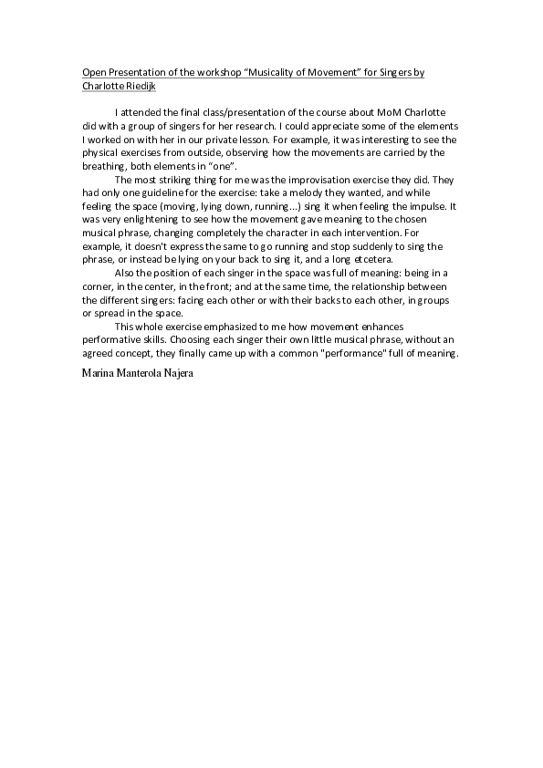 · Improvisation with sound and movement is an important aspect of the musicality of movement approach. Did you improvise with movement and sound/voice before?