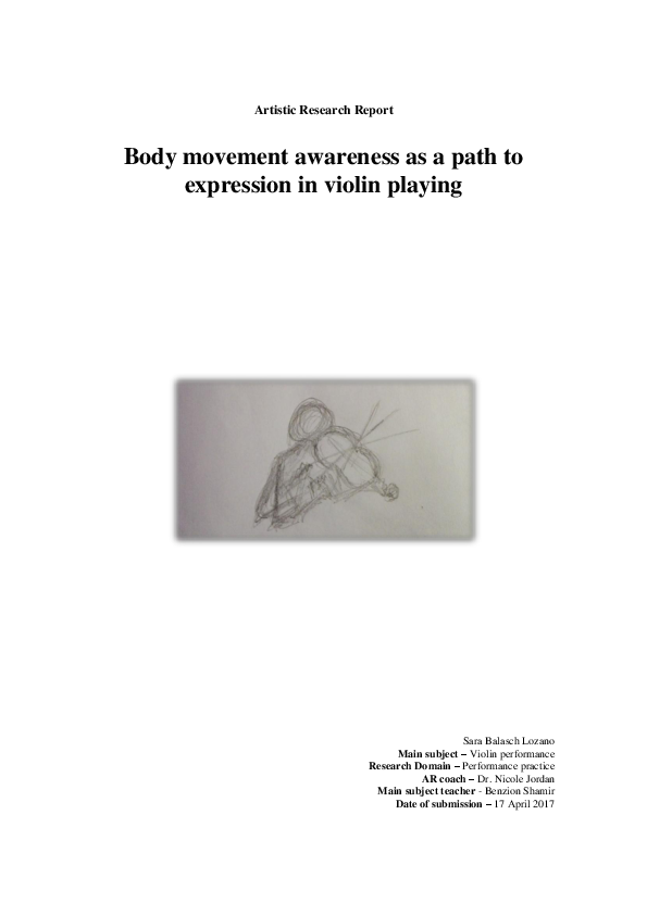 When playing the violin my goal has always been to communicate and emotionally move my audience. I saw this as an important role as a musician in general, but it was also important for me as a human being. From the first moment I began thinking about my Masters research, I was aware that I would spend hours of practise on the violin and likely read many books. I really wanted to work on something that I was passionate about. I have always been interested in body movement. I love violinists who move easily on stage and I have always been curious about how they connect so well between their body and the instrument. I wished to have the same freedom in my own movement when playing. Violinists such as Janine Jansen and Pinchas Zuckermann were always a great inspiration for me. They were so full of power and emotion in both their musical and physical expression while playing. I felt that this kind of physical expression wasn’t my strongest point as a violinist when I started my research process. Sometimes I felt stiffness in my muscles while playing. On other occasions I had the feeling of not being able to transmit the emotions of the piece to the audience in its totality because I was having blocked or stiff movements. I also felt that my sound was affected by this stiffness. For these reasons I wished to examine the effect that body movement has on my playing. I also wished to explore how I could help my violin sound and musical phrasing through awareness of my motion. I wanted to connect more with my audience as a musician and as a person and I wished to do it through movement, but how could I connect these two subjects? Further, how could movement and physical awareness affect my violin playing? I started asking others such as teachers and musical peers about methods and ways to expand my range of movement and how to connect it with expressivity. It was a complicated topic and difficult to define what I needed. My research coach, Nicole Jordan suggested that I contact some experts in movement analysis such Annemieke Wijers from the dance and health department of Codarts. I needed a place to begin research into movement and expression. During the talk with Annemieke I was told about Laban Movement Analysis and it became the starting point of my research.