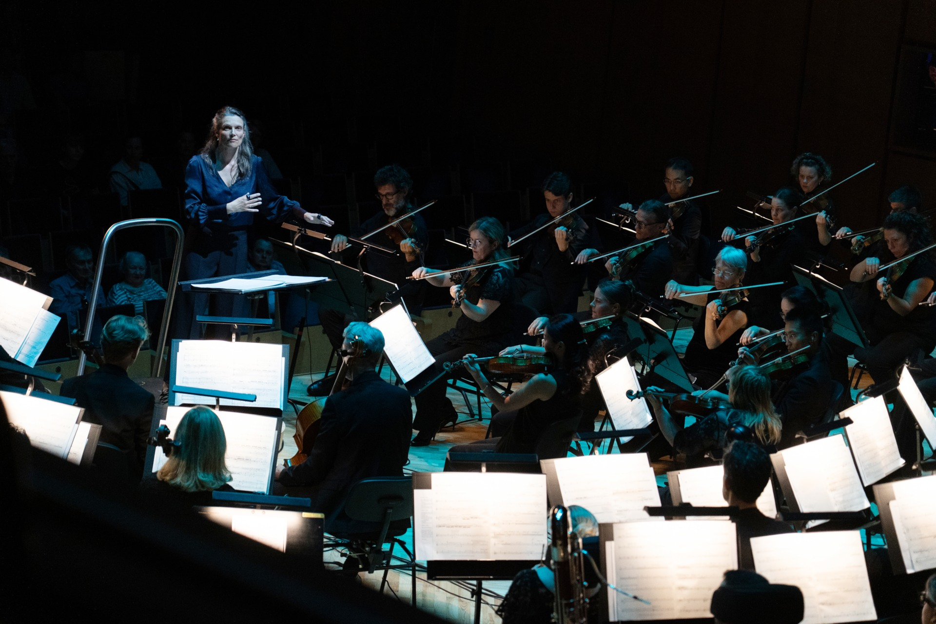 Her listening practice opens up the traditional symphonic roles of conductor and orchestra, by giving space for creative collaborations, flexible leadership, fluctuating agency, transdisciplinary work and an exploration of the performing body as an expression in itself.