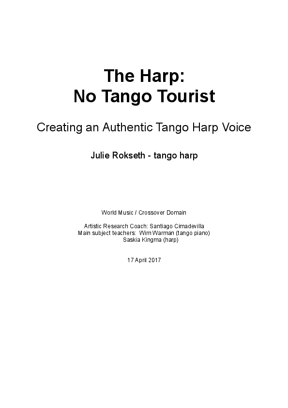 My Boldest Artistic Decision was to break convention and play the classical harp down the Tango line at Codarts. It was the nurturing at Codarts that let me to focus my Artistic Research on injecting the harp into Tango and discovering whether, and how the harp could sing with an authentic tango voice while also being able to give some of its own uniqueness upon the tradition. To make sure that the harp can become a real and organic tango instrument rather than being a “tango tourist”– a borrowed classical instrument that sometimes sits like a lovely guest but doesn’t actually belong. This Artistic Research project has allowed me to show that the harp can sing with a voice that DOES belong in tango. The Harp: no tango tourist.