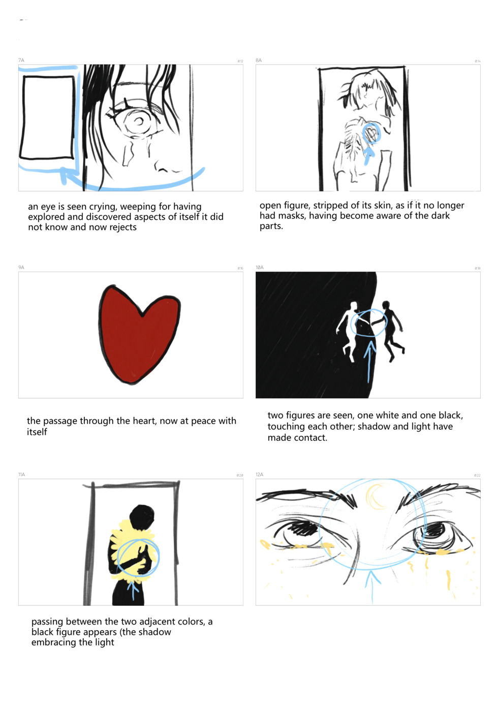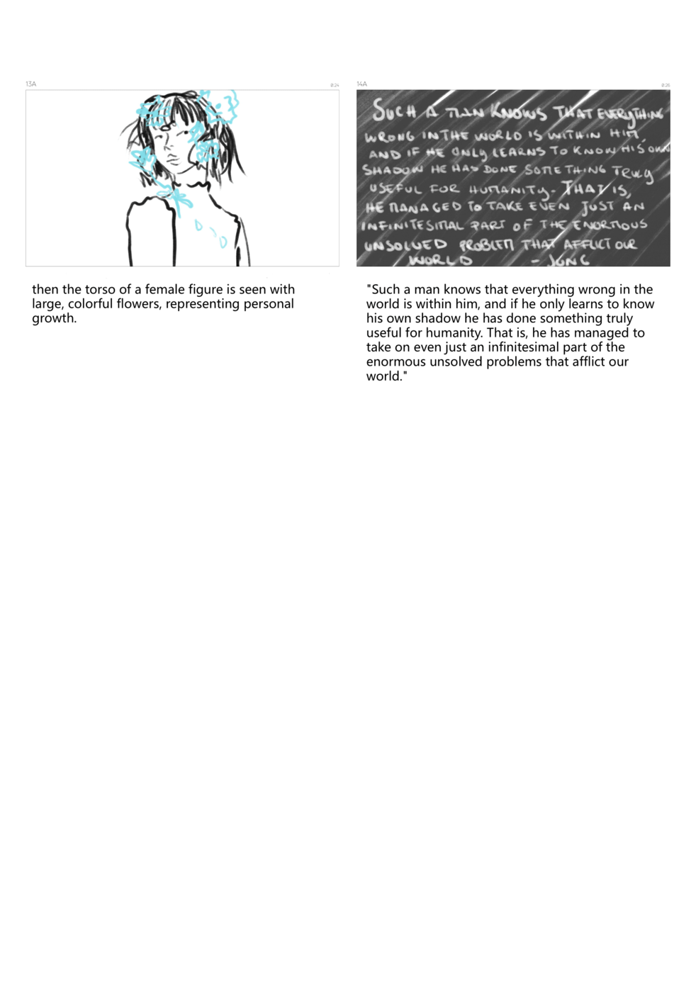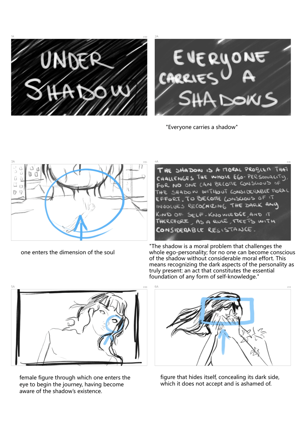 Considering that the shadow may appear in dreams and in other forms, I chose to shape this journey through a visual narrative inspired by some of Jung’s quotations, so that it resembles a dream or an inner revelation. Indeed, interactions with the shadow in dreams can shed light on one’s inner state.