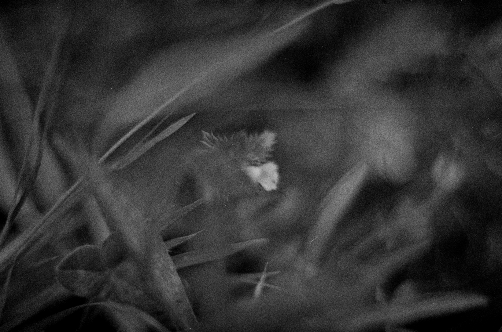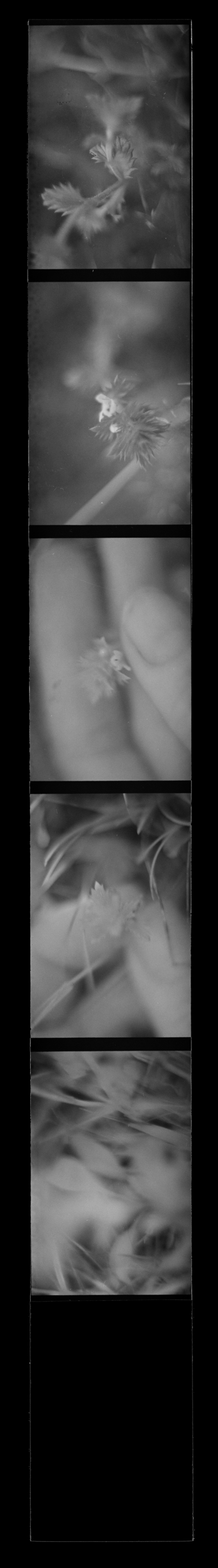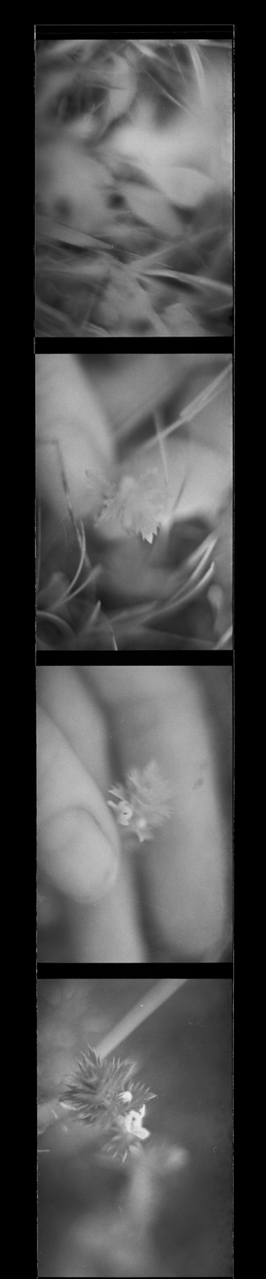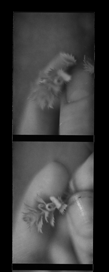 Ögontröst is one of the artistic components of my PhD research in Fine Art, where I explore whether infrared (IR) camera technology can foster a “cyborg perception” — a technologically enhanced vision that, by extending visual perception, may also expand what futures we are able to imagine. IR technology, which visualises electromagnetic radiation, wavelengths invisible to the human eye, has been refined for military applications, primarily for its capacity to detect body heat. In Ögontröst, I repurpose the IR vision through speculative fiction and feminist techno-critical approaches, exploring how it might be redirected toward sensibilities of care. The work is based on footage gathered at decommissioned military sites in the Nordic region, filmed at a macro scale with a focus on plants slowly reclaiming these spaces. The imagery shifts between two types of cameras: a thermal camera revealing the filmmaker’s body heat and the lingering traces of touch left on plants and concrete structures, and analogue near-infrared footage visualizing the chlorophyll in the plants. The analogue film is developed through organic processes using plants collected from the filming sites. The piece follows a protagonist searching for the medicinal plant ögontröst (eyebright), historically used to treat eye infections, as a remedy for eyes wounded by witnessing violence and ecological collapse in a hypermediated world.