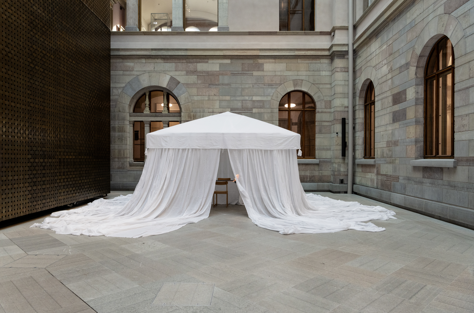 Nationalmuseum som plats och verksamhet hade en mycket tongivande position i arbetet. Huset bjöd både på otroliga möjligheter och stora utmaningar. En sådan utmaning bestod i hur spelplanen utformades. För Nationalmuseum var det mycket värdefullt att aktivera utställningen löpande under perioden. Detta resulterade i en spelperiod med utspridda speltillfällen under fyra månader. Ett sådant upplägg är väl etablerat inom bildkonstsammanhang, men ställde oss, som är vana vid en sammanhängande spelperiod, inför en del ovana situationer. En annan utmanande omständighet som kom att få stor inverkan på det konstnärliga arbetet var den begränsade tillgång vi hade till lokalerna under förberedelsearbetet. Att arbeta fram ett platsspecifikt verk med mycket begränsad tillgång till platsen är utmanande. Det gjorde det nödvändigt för oss att anpassa vår konstnärliga metod, som annars är baserad på att i stor utsträckning utforska materialet på plats. Istället fick vi tillämpa en konstnärlig metod som i större utsträckning utgick från att jag och min medregissör skrev verket på distans. Detta gjorde att verket fram till öppningsveckan i huvudsak existerade som en inre bild hos den konstnärliga ledningen. Denna särskilda omständighet gjorde att min upplevelse av processen kom att präglas av frågor som rör kreativitet som begärsform. Arbetet kom på flera sätt att aktivera frågor kring de dynamiker som kan föda och forma kreativt begär samt hur olika former av kreativt begär kan påverka relationen till aktörerna och besökarna.