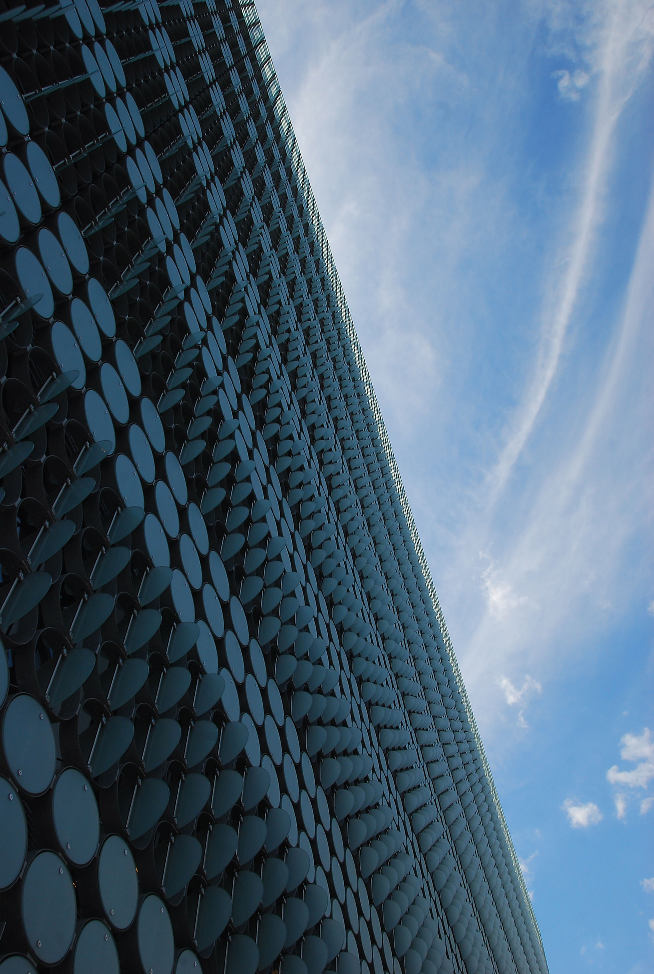 The exterior of the building is covered in a sheath of 16000 sand-blasted glass circles, offering a translucent connection between interior and exterior, thus being at once connected and disconnected, or offering a kind of mediated connection between in and outside. Inside, on most levels, the building is split in two, separated into a long room and a ‘workshop room’. (**is this right? Was it warehouse space instead?). As many levels the experience of the building was effected. As a result, we felt that some disorientation came about, as it was difficult to discern which level