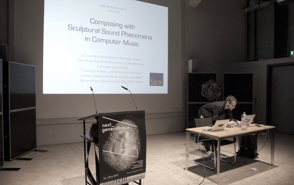 Lecture by Gerriet K. Sharma and the concert piece mo.ve [modus vertiginis] with the IKO by IEM-student Antonia Manhartsberger.