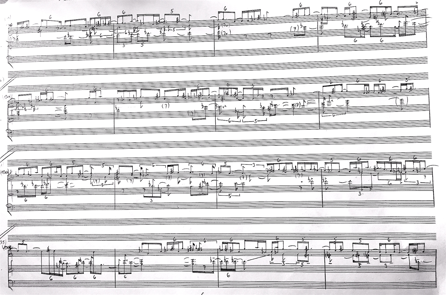 Neste lydeksempel er fra klaverkonserten, og kan ses i sammenheng med noten under, i forhold til rytmiske mikrovariasjoner. De små mønstrene i klaveret får bevege seg rundt større pulsslag.