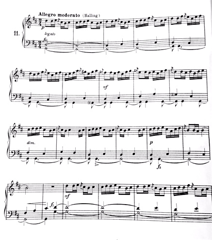 Eksempel på springarrytmikk i utdrag fra Olav Kielland: Villarkorn VIII, spilt av Ingfrid Breie Nyhus (Nyhus, 2015b, spor 6)