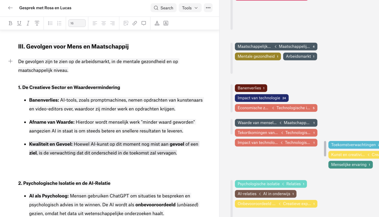 Als eerst heb ik Rosa geinterviewd. Zij heeft artificiele intelligentie gestudeert op de Vrije Universiteit van Amsterdam en is nu bezig met een master Filosofie. Voor mij klonk dat als de perfecte gesprekspartner om het mee over AI te hebben.
