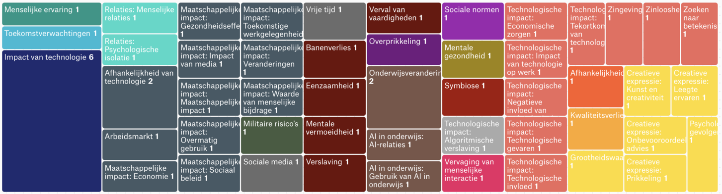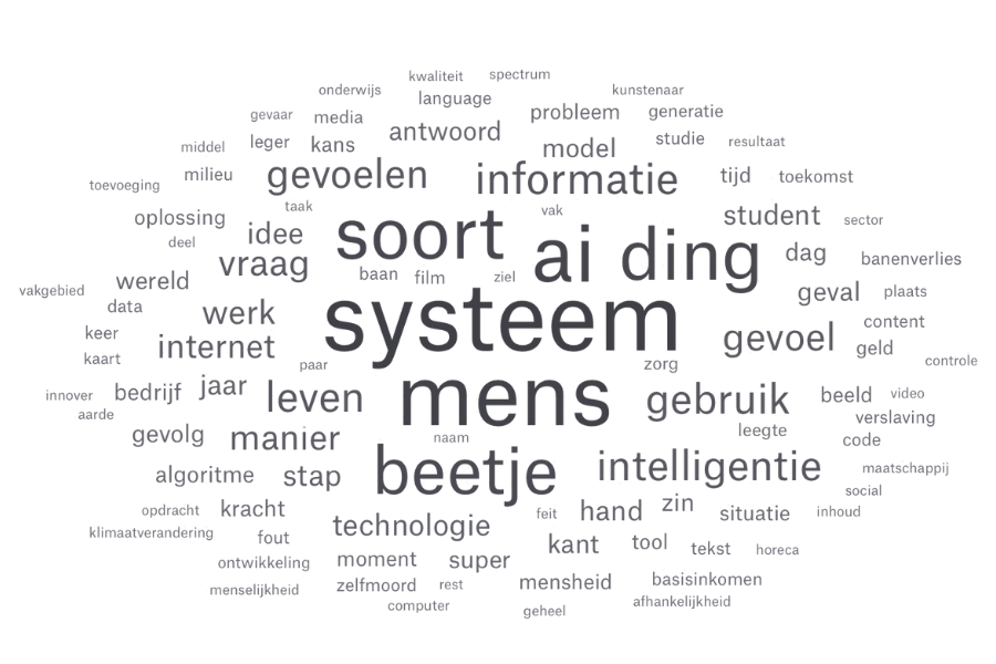 In ons gesprek kwam als centrale vraag naa boven:"de leegte die AI genereert". Daarmee doelde ze op de leegte die AI zal maken in ons leven als er heel veel taken doelen en interacties worden overgenomen. Hoe gaan we hier mee om als mens? en zitten we wel te wachten op veel vrije tijd?
