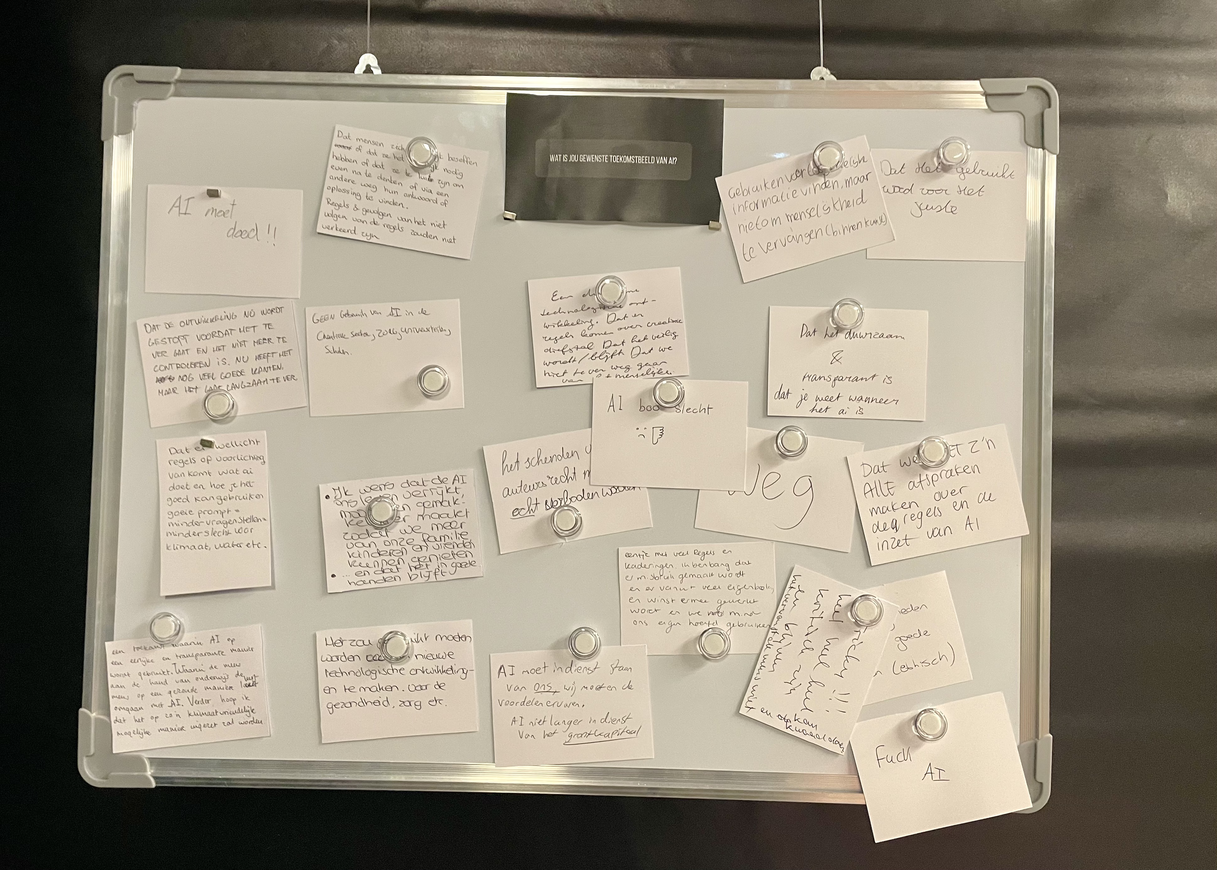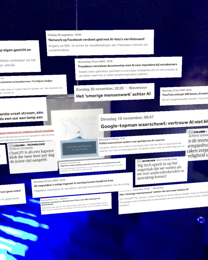 In de onderzoeksfase heb ik een mini-documentaire gemaakt waarin ik met mensen uit mijn directe omgeving in gesprek ben gegaan over kunstmatige intelligentie. Deze gesprekken brachten een gelaagd beeld naar voren: AI roept nieuwsgierigheid en enthousiasme op, maar ook twijfel, angst en onzekerheid over controle, werk en menselijkheid. Door persoonlijke verhalen en uiteenlopende perspectieven naast elkaar te zetten, werd duidelijk hoe diffuus en vaak tegenstrijdig onze relatie met AI is. De mini-documentaire fungeert daarmee niet als conclusie, maar als spiegel: een eerste tastbaar resultaat waarin de complexiteit van mijn onderzoeksthema zichtbaar en voelbaar wordt voor de kijker.