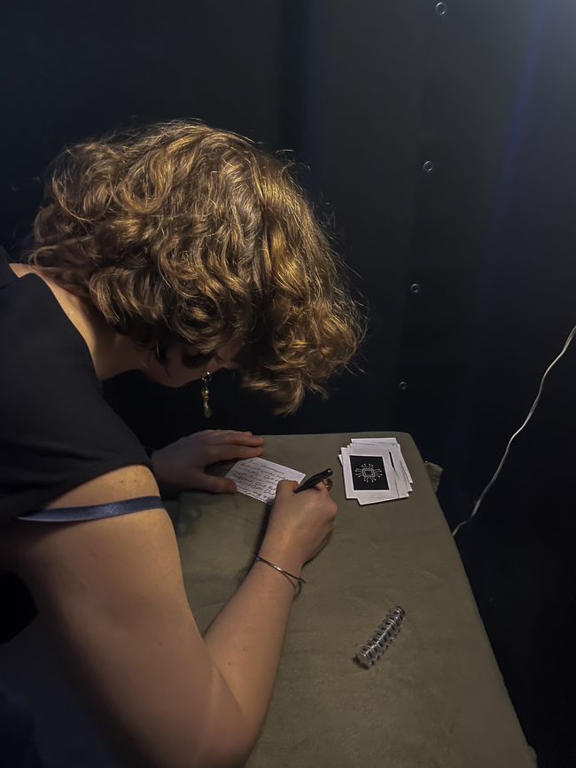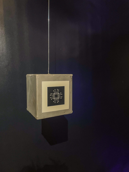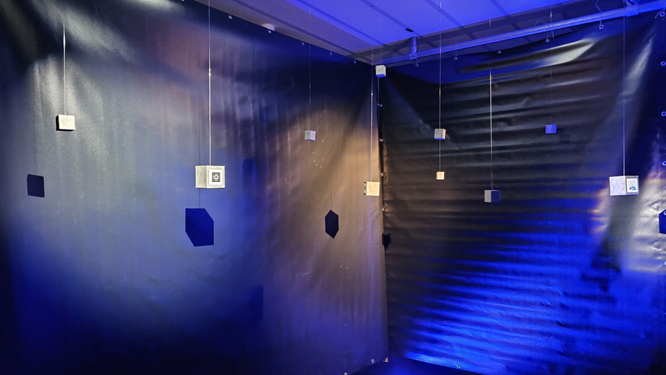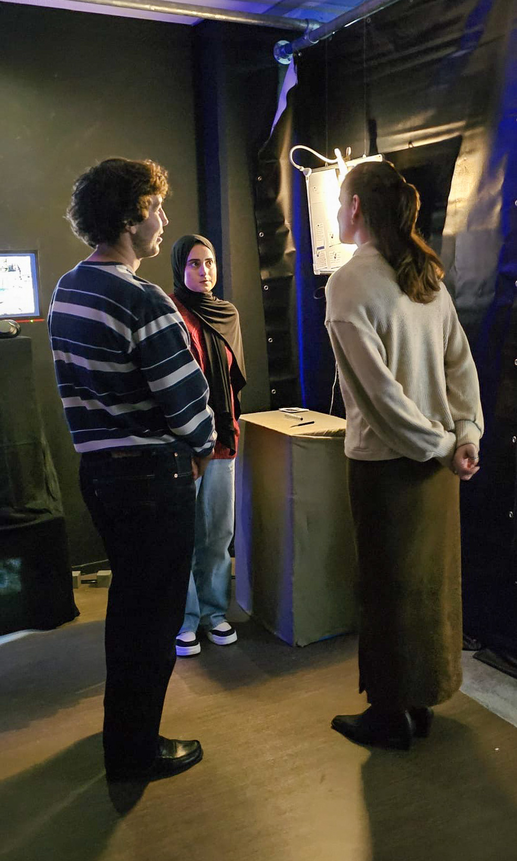 Het eerste semester heb ik afgesloten met de expositie Pijnpunt . In deze expositie moet ik de probleemruimte die is ontstaan uit mijn onderzoek in de eerste maanden naar een ruimtelijke installatie vertalen. Het werk maakt een mijn gekozen pijnpunt invoelbaar en ervaarbaar voor de bezoeker. De focus ligt niet op het tonen van mijn proces, maar op het overbrengen van inzichten rondom mijn thema. Door middel van onderzoekend maken, materiaalexperiment en ruimtelijke verkenning fungeert mijn installatie 'Het AI Universum' als een alternatieve vorm van kennisoverdracht.