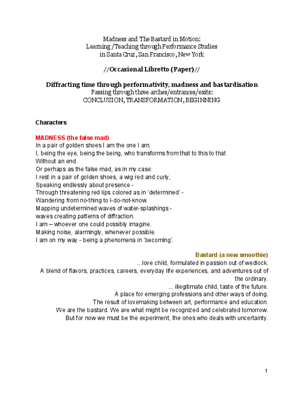 “Madness and Bastard in Motion: Learning through Performance Studies”