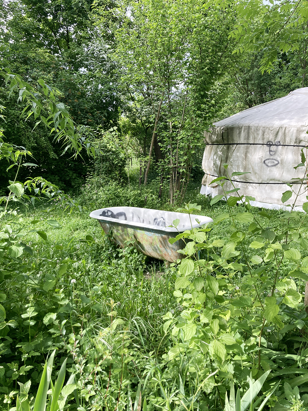 As part of the artistic research project Urban Wasteland as Ambiguous Spaces of Appropriation and Participation (2024-2025),1 the artistic intervention emerged from an ethnographic exploration of collective forms of life on wastelands in Switzerland. Subjects such as self-organized care, occupation, informal infrastructure, gift economies, and the shared use of water and electricity formed the conceptual basis of Foot Baths for All.
