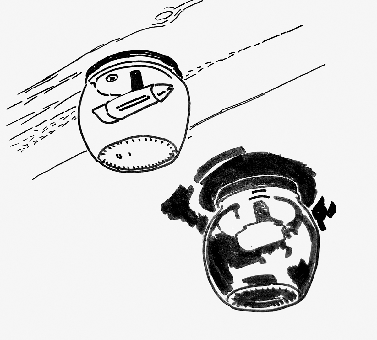 The artistic translation of ethnographic insights into the intervention Foot Baths for All was not a linear transfer of knowledge. Instead, it unfolded as an open and experimental process in collaboration with the scenographer and artist Monika Schori. During this process, which involved discussions, material experiments, and bricolage technique, sketches became both a working and communication method. They allowed us to explore spatial and material possibilities and served as a tool for collective ideation, providing a shared basis for discussion.