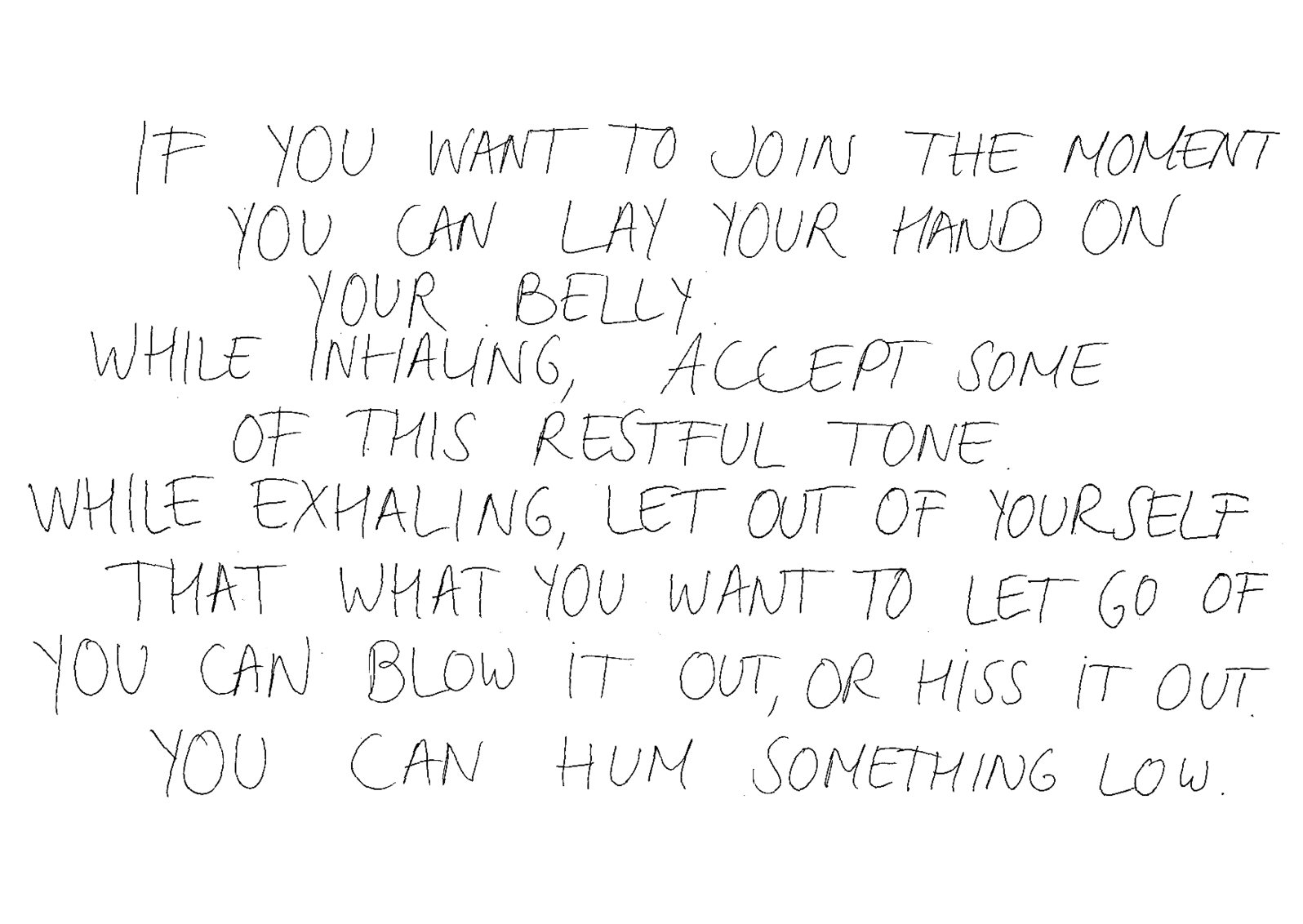 Perhaps the most palpable way to account for the embodied and affective transitions catalysed by the composition was through the pattern of mutual silence in the hospital stairwell. The ways in which many people attuned to the silent states of listening seemed to invoke a sensitivity that brought about embodied changes, which were felt and noticed by many. But how to talk about the ambiguous phenomenon of attuning to listen, and becoming sensitive to rigorously encountering what one hears and senses? Particularly since this cannot (for the thoroughly in-between quality of the phenomenon) be introduced as an object of knowledge?1 The notion of atmosphere helps to illuminate the specific, affective quality of such an experience of listening as a relation. As one entered the stairwell from the wards, or the main entrance, one was first and foremost faced with the intimate, vibrating atmosphere — not an art object — which people experienced through their bodies and their sensate knowledge. According to Vadén and Torvinen, atmospheric experience precedes the identification of separate entities.2 Anderson argues that ‘affective atmospheres are a class of experience that occur before and alongside the formation of subjectivity, across human and non-human materialities and in-between subject/object distinctions’.3 Such an in-between sphere is collectively available, as Vadén and Torvinen emphasise. However, it needs some human participation for it to affect.4 Consequently, I aim to map the ways in which people composed themselves in relation to this field of resonance in terms of sensate knowledge, and why this apparently embodied relational register might matter. I will enter the material reality of these moments, and the challenging issues that emerge from within, through my own situatedness.