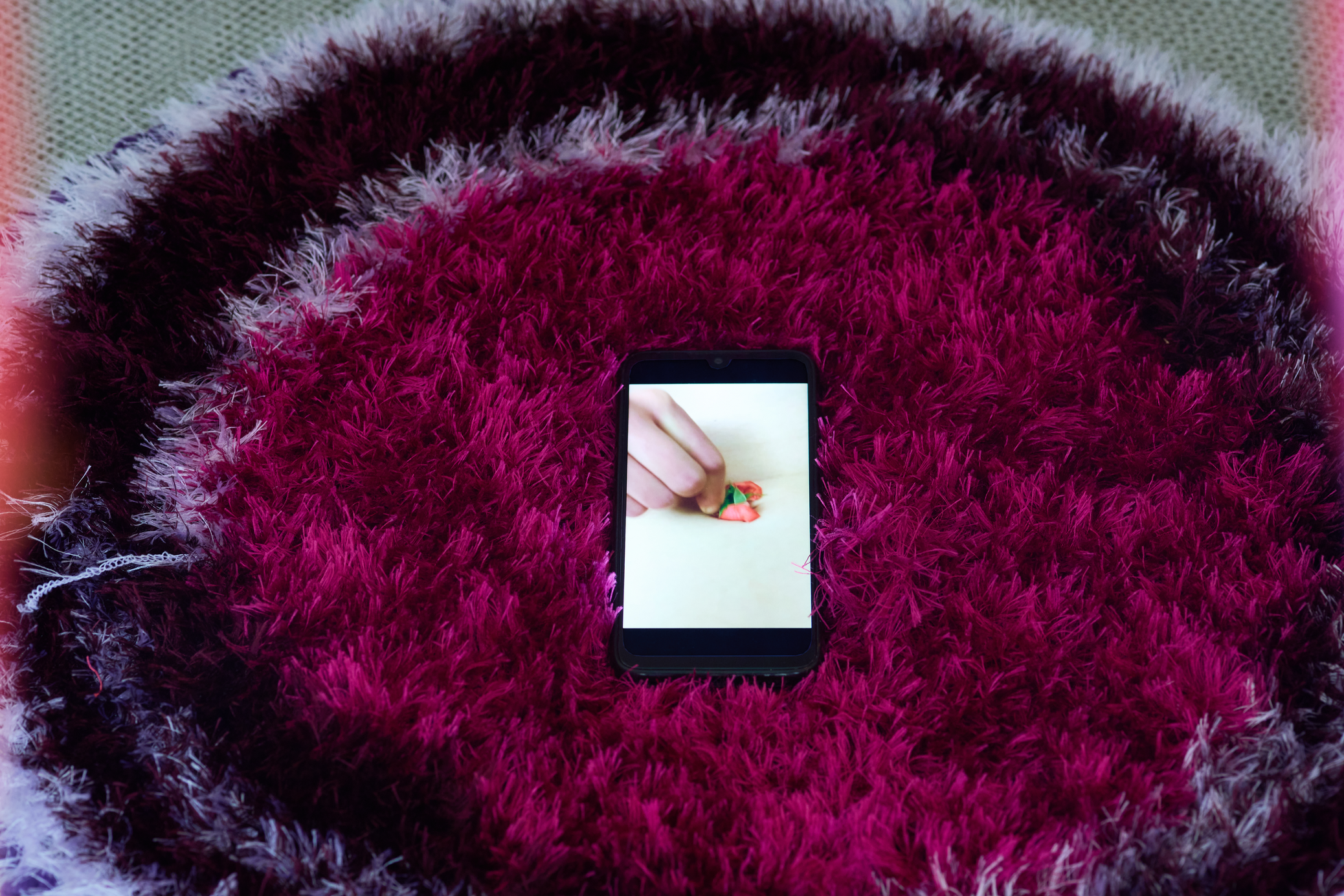 The video Deflower serves as the sensual core of the project. It captures the spontaneous and intimate atmosphere of the location, evoking an automatic interplay of gestures and personal experiences that are transformed into a frozen memory—an untransferable, encapsulated experience—replaying continuously on a mobile device.