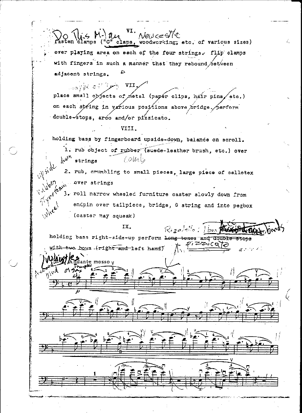 In contrast to the work of picking through the notation and assembling objects, which proceeds bit-by-bit at the most pragmatic level possible, when beginning the rehearsal process for a concrete performance I survey the variations as a group and consider which ones to play in which order. Although the letter of the score neither requires nor permits mixing and matching variations to taste, both the performative diary embedded in Patterson’s edits and our direct correspondence have provided more than sufficient encouragement.