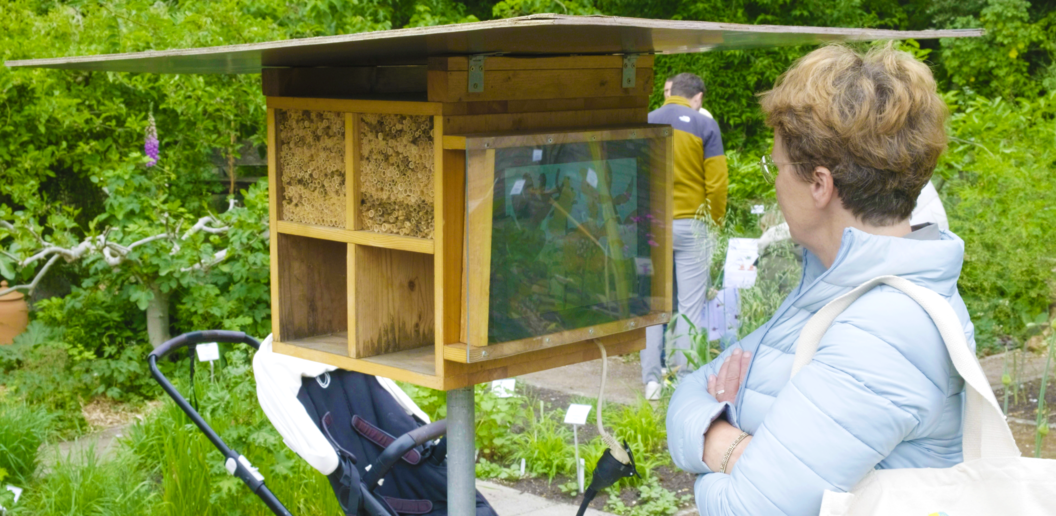 The installation does not merely ask humans to observe bees – it prompts a shared presence, where humans and wild solitary bees occupy the same space, each navigating their own umwelt. In this sense, the installation functions as both a space and inquiry: How can humans cultivate attentiveness to nonhumans in ways that neither reduce them to human frameworks of meaning, nor render them invisible, but instead allow for a shared multispecies space?