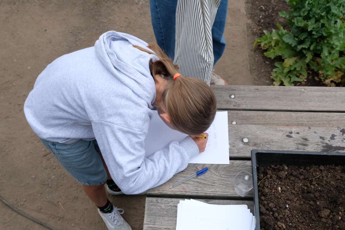 Engaging materially and ecologically – whether through humans creating seed letters or bees pollinating – generates a space of multispecies interaction and co-creation. Spacemaking in this context is not merely about physical space, but also emotional, social, and ecological space. This extends the bee hotel beyond its physical boundaries, transforming it into a space of reciprocity where action produces the multispecium: a site of encounter, practice, and shared experience across species.