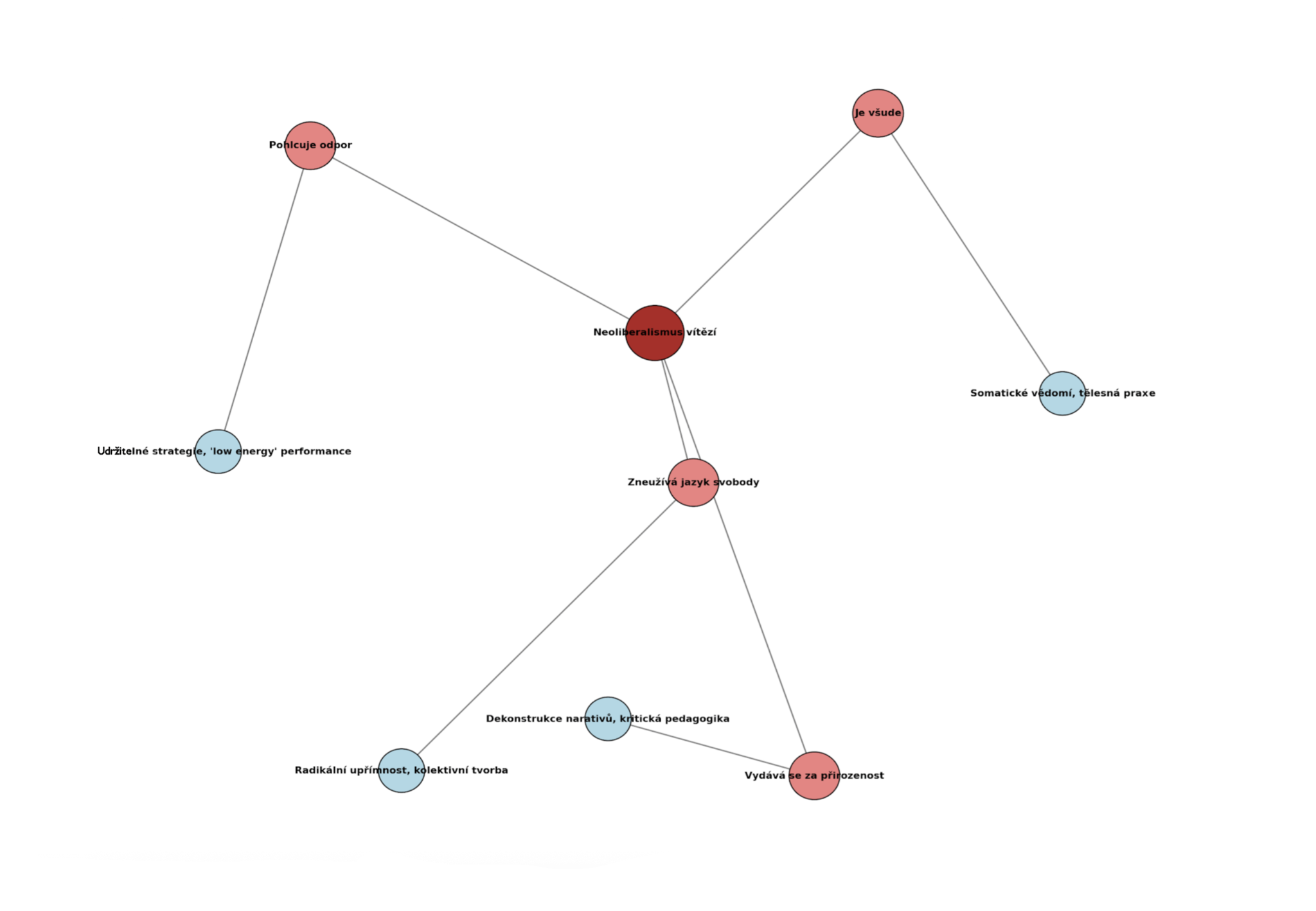 Přesto se i u vzdělaných lidí a umělců setkáváme s obhajobou stávajících systémů. Děje se to, protože se přes všechno, pochopitelně, snažíme hlavně přežít. Prekérní podmínky vedou umělce k přizpůsobení se, hledáme stipendia, granty, příležitosti. Abychom přežili, musíme být čitelní, vhodní, inovativní a v umění ještě ideálně excelentní. A systém nás za to pak odmění. Protože systém má potřebu se tvářit jako otevřený. Neoliberalismus neumí zakazovat, on mnohem raději vybízí: vyber si, zvol si, buď jedinečný. Umělec si může myslet, že tvoří svobodně, ale často se jen přesunul z klece cenzury do pasti sebeprezentace. Protože vnitřní tlak, tlak který jsme vstřebali, přejali za svůj, je neviditelný. Jak říká Bojana Kunst: umělec si internalizoval logiku trhu. Už nemusí být nucen, chce být výkonný, efektivní, produktivní sám od sebe a to je ta nejrafinovanější forma moci.
