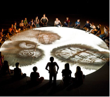 účinkující a diváci mohou být v jednom kruhu či oválu – nebo v několika kruzích, volně se pohybujících uvnitř či venku