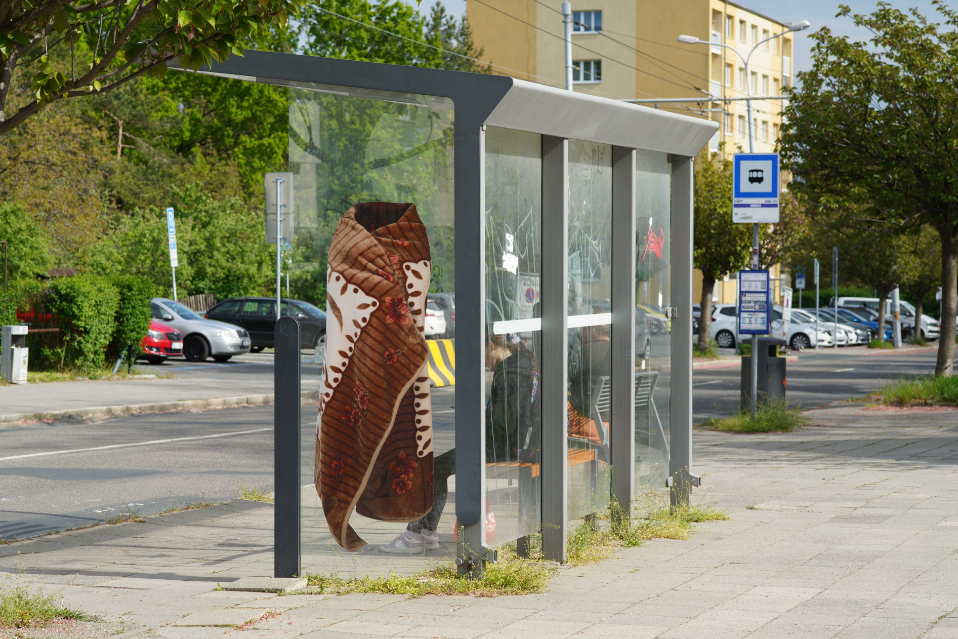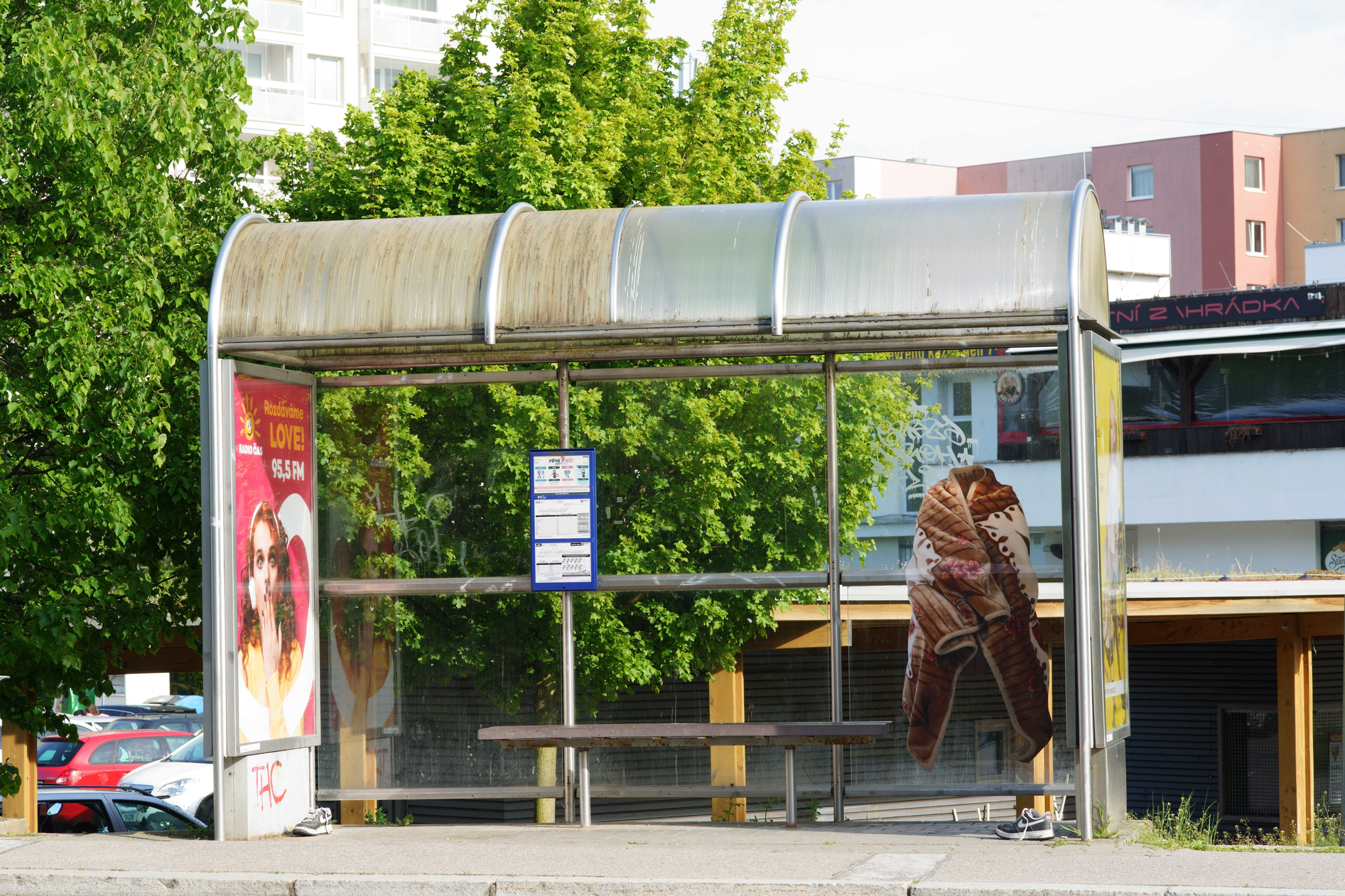 I found 9 bus stops in Brno with the names of the states and decided to place my installation there, to serve as a symbol of migration and foreignness.