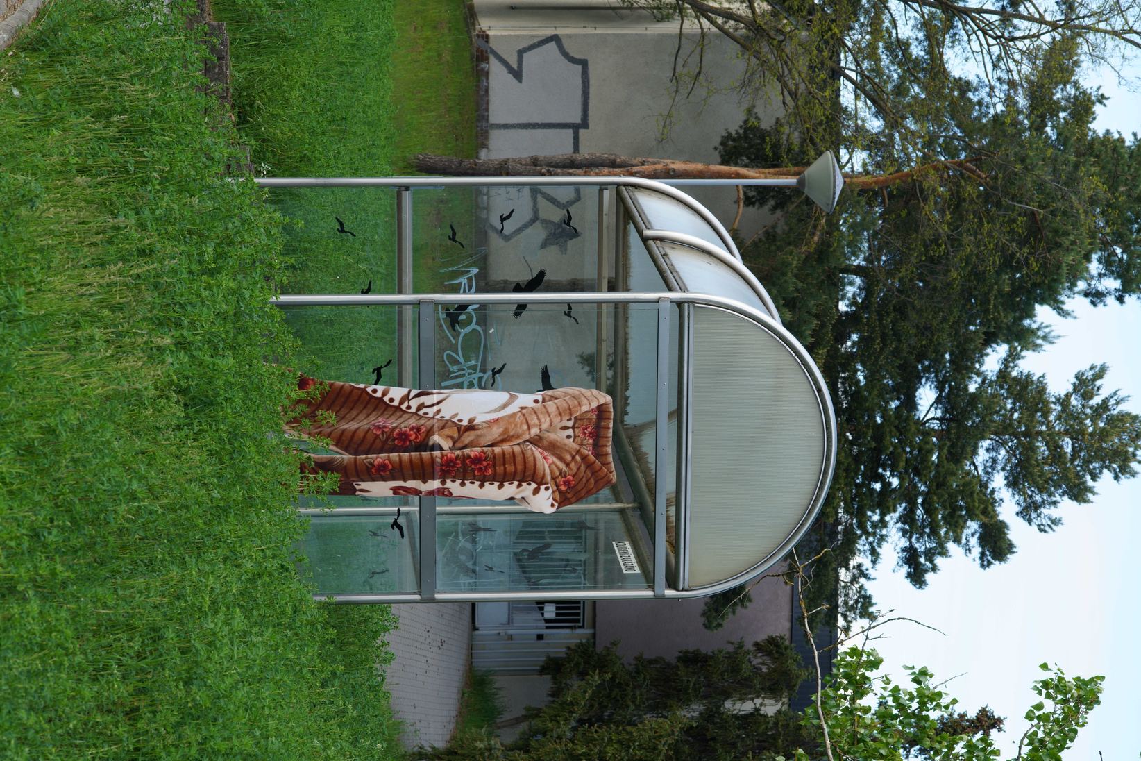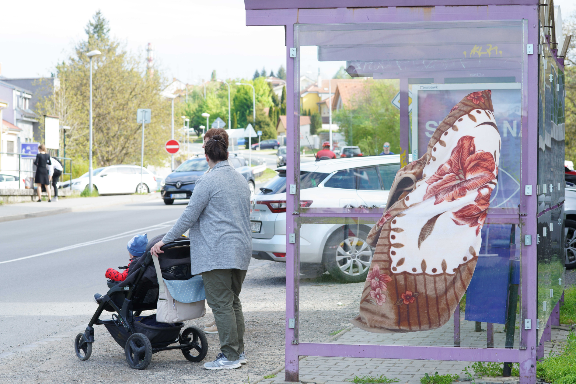 The second encounter happened at the Belarusian stop. An elderly woman asked what I was doing. I told her about the project. She admitted she could not quite understand why I chose a bus stop instead of a gallery, but she said she liked seeing young people express their voices. She spoke with great compassion for migrants and added that even for the locals, life was far from easy.