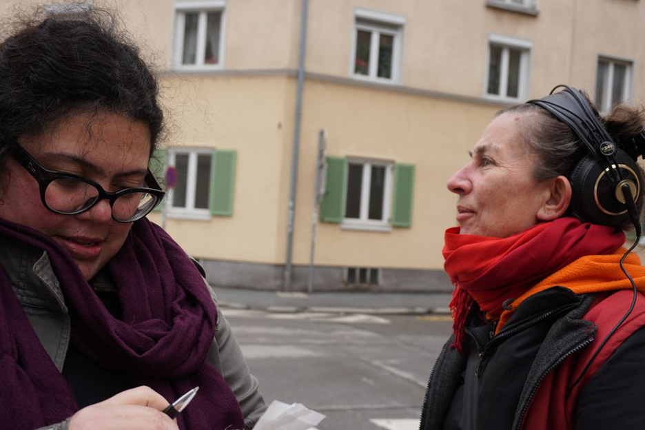 Acoustical surveys of the city. An experimental radio piece. The spatial design of a city seems to dictate who moves around in it and how. Mäanderungen (“meanderings”) is an acoustic suggestion for developing alternative forms—in real, physical space; in electronic, radiophonic space; and in the imagination. Meanders are created by friction, by the sensing of irregularities, between depth and surface, in motion. The exploratory process developed by the temporary production collective corresponds to a form of walking, being and moving in the city that arises in the here and now, free from purpose, and that is individual, subjective, and inquiring. Peculiar views of the urban space are made possible—unusual, temporary units of measurement introduced. Part of the material created is based upon an interpretation of different spatial realities such as facades or gaps. They are photographed, drawn, captured by sensors or pressure and combined with text fragments to create a composition that manifests both as a radio drama and in the form of a spatial installation. The translation process is driven mainly by an algorithmic generator that is constantly allowing new coincidences. Mäanderungen was the winning project of the lime_lab 3 prize for experimental radio play. lime_lab is a cooperation of Akademie Graz, Forum Stadtpark, Literaturhaus Graz, ORF Steiermark, and steirischer herbst.