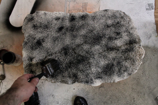 The concept of reconfiguration however entails all aspects of "a work", also its physical properties, spatial display, etc. For Pixxelpoint, we reduced the installation to contain only the ceramic prints, this time extended from five to seven plates. In October 2019, we thus created three additional prints, which came out slightly different than the old ones (thinner and slightly larger, but also the clay was of a different type or different burning temperature). We decided to add a graphite process to perhaps enhance the relief structure of the prints.