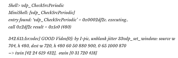 To override the resync, we hypothesised that the SigMon (Signal Monitor) command might be key. When we sent a ‘Stop SigMon’ command, the whole device shut down. This led us to examine a series of sub-tasks and discover another piece of code — ‘App_Pause_SMTask’ — that, when typed into the terminal, paused signal monitoring rather than shutting it down, which kept the converter from trying to resync ‘bad video’. We could now disrupt the incoming broadcast and not lose signal. This was a significant breakthrough; once the weak signal warning was paused, the signal became a material that we could freely explore and manipulate.
