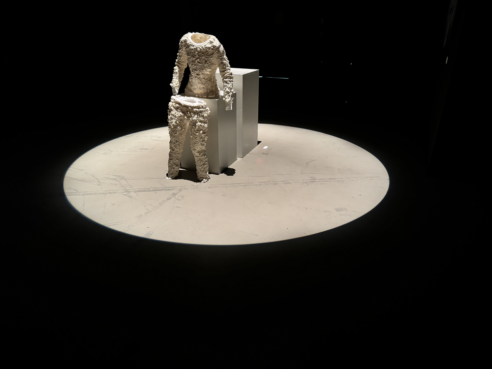 The paradox that I absorbed through my readings of Butler, and that resonates in my own sense of anguish, is that without norms there is no subject, but with norms the subject appears fixed. It is only in the repetition of those norms that agency can emerge. This paradox became visible in my artistic research, though at first in an unconscious way. I was not initially thinking of using the pedestal and the spotlight, but these elements appeared as the process unfolded, once I reflected on the process of doing. This reveals something fundamental about artistic research: unlike the scientific method, which requires each step to be justified beforehand, artistic research allows meaning to emerge in and through practice. Knowledge is produced not by applying a pre-existing plan but by working with what arises, and then reflecting on it.