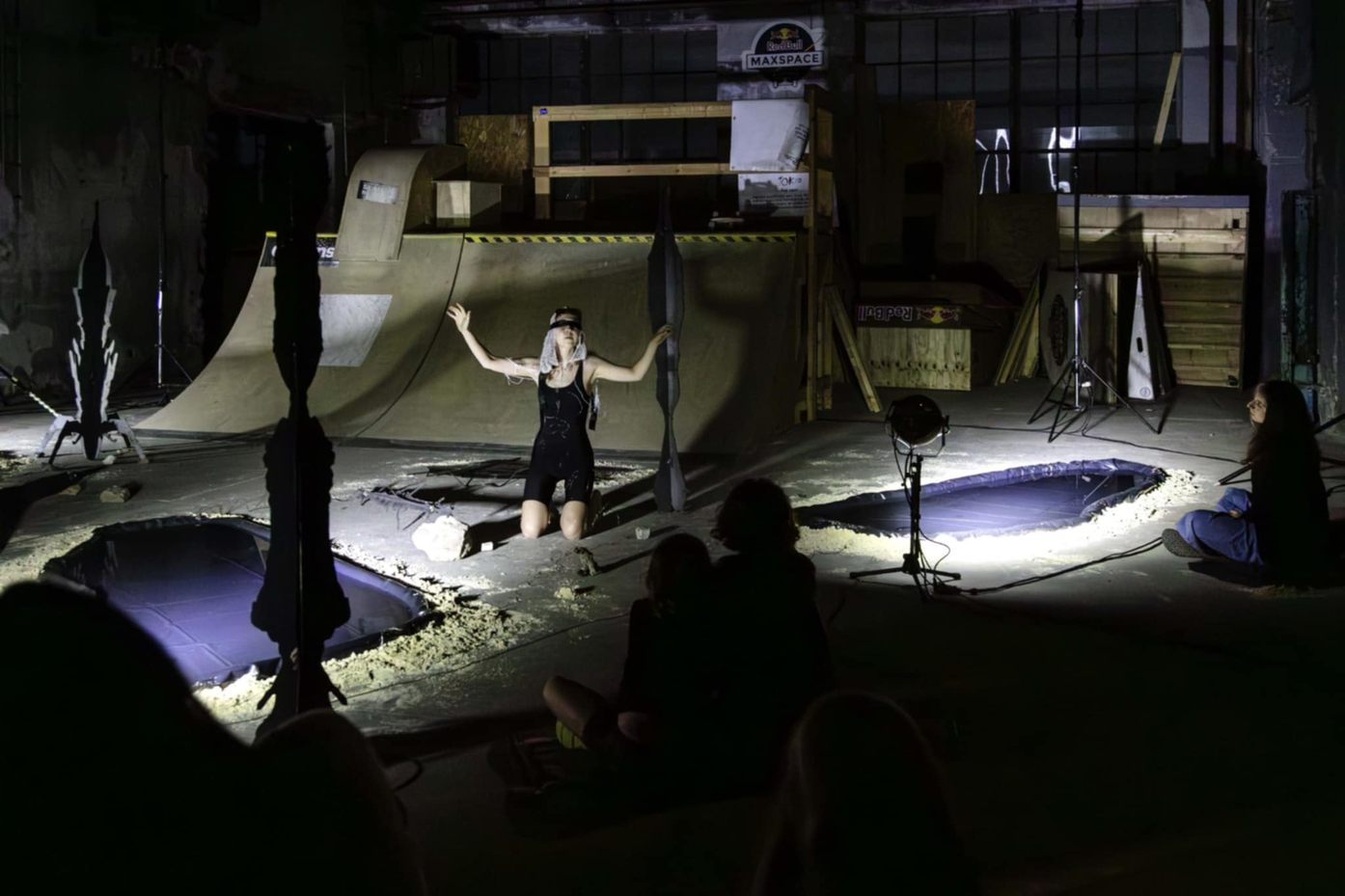 coming from the site-specific / site-(in)dependant environment where the embodied research takes place to creation of controlled scenographic environment (white-cube/black-box) where the gained ideas are translated to the audience through installation - sound - movement and participation