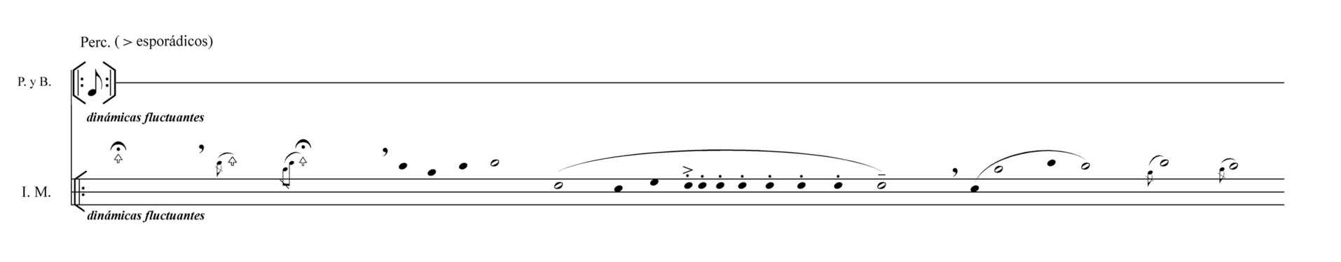 Example 4(d).Verdaderos Negativos excerpt, performed by Ensamble CG members. (4 interpreters version).