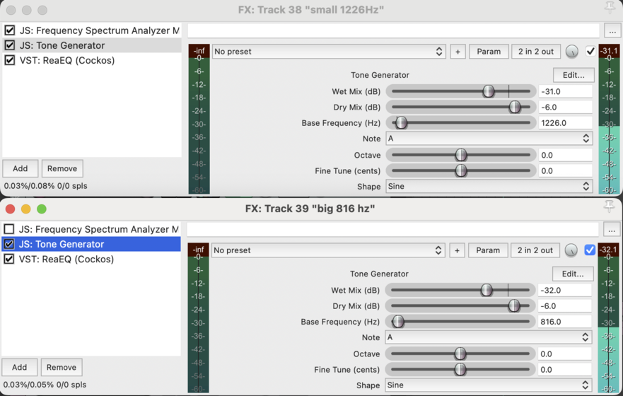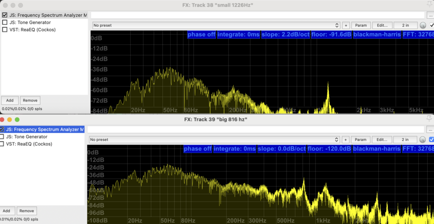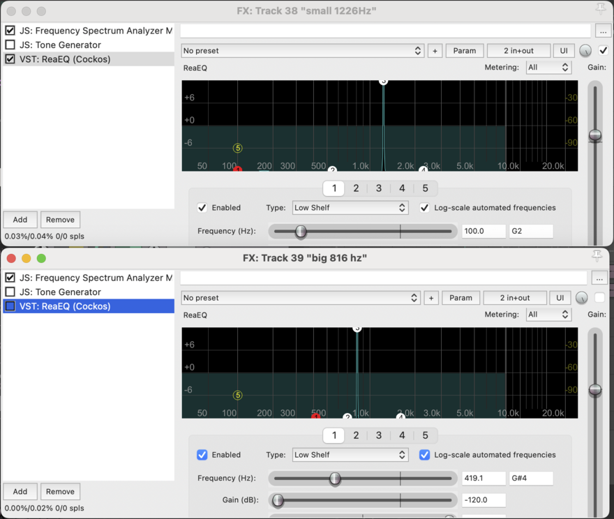Washing Machine recording playing at 816hz bottle with Omni microphone inside and an EQ Peak Filter applied