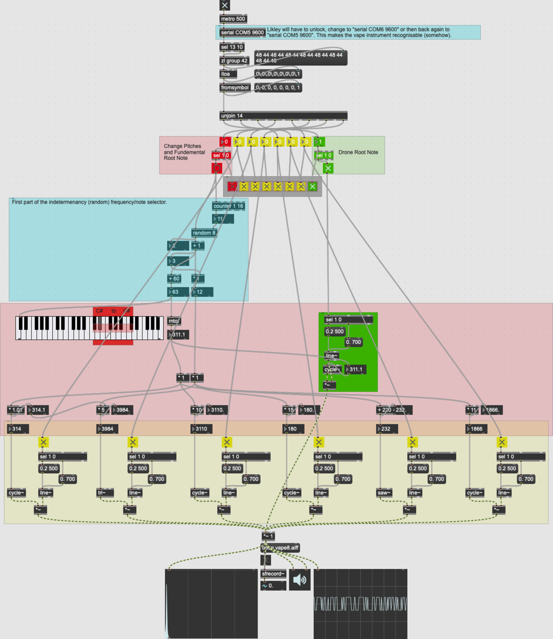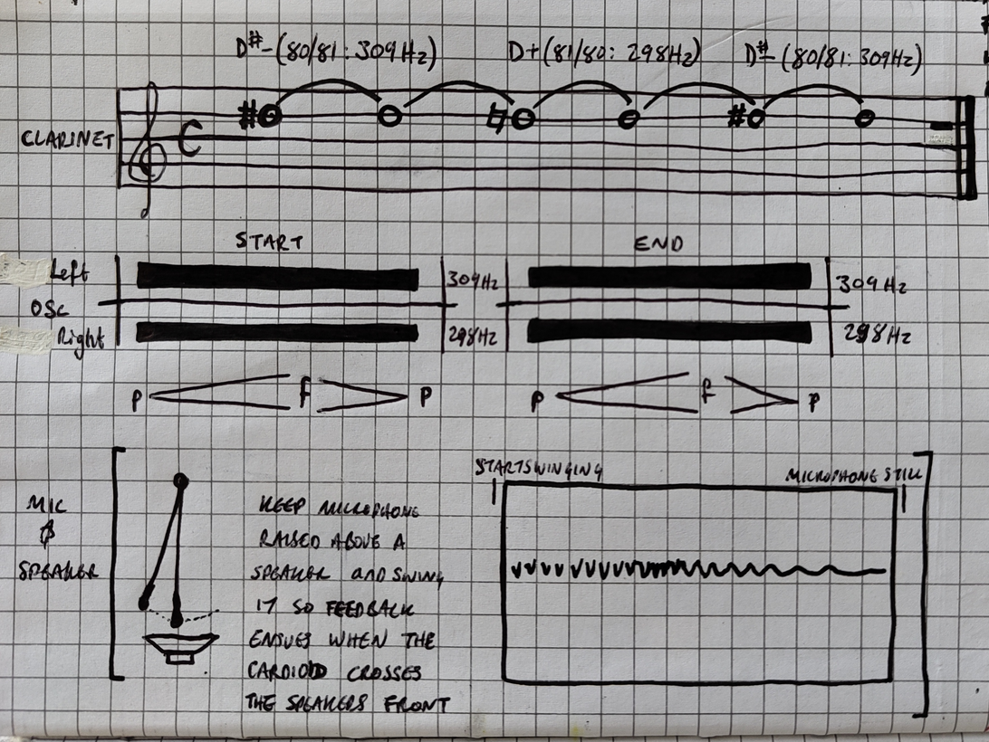 After listening back to the recording of the feedback, I found its frequency range and discovered I could almost match it on clarinet to overlap its spectral content the spectral peak of the feedback.