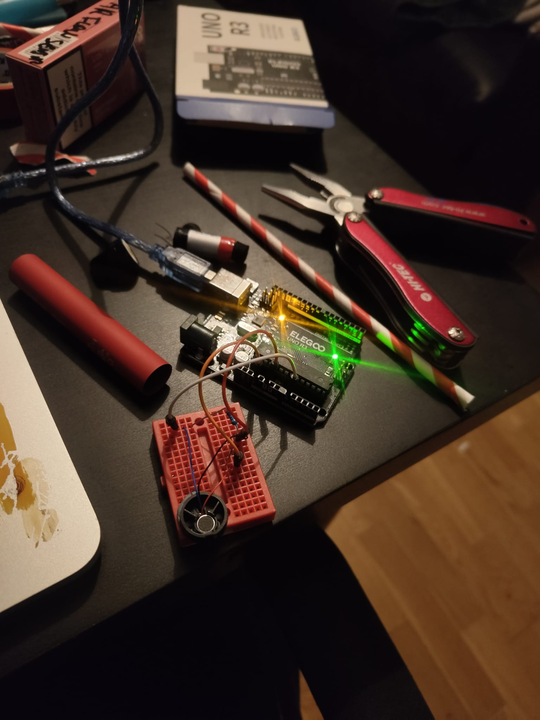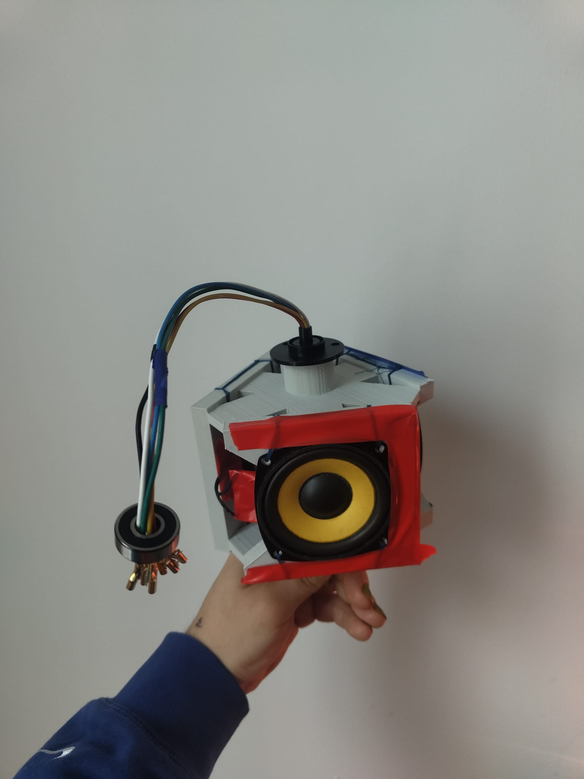 This is a work in progress. It was not important to the core research to complete this experiment, but it is an idea worth considering for future spatial sound research for real time tracking that would interact with the audience a change the audio produced through the speakers, as well as how the speakers would change the sound through its spinning feature.