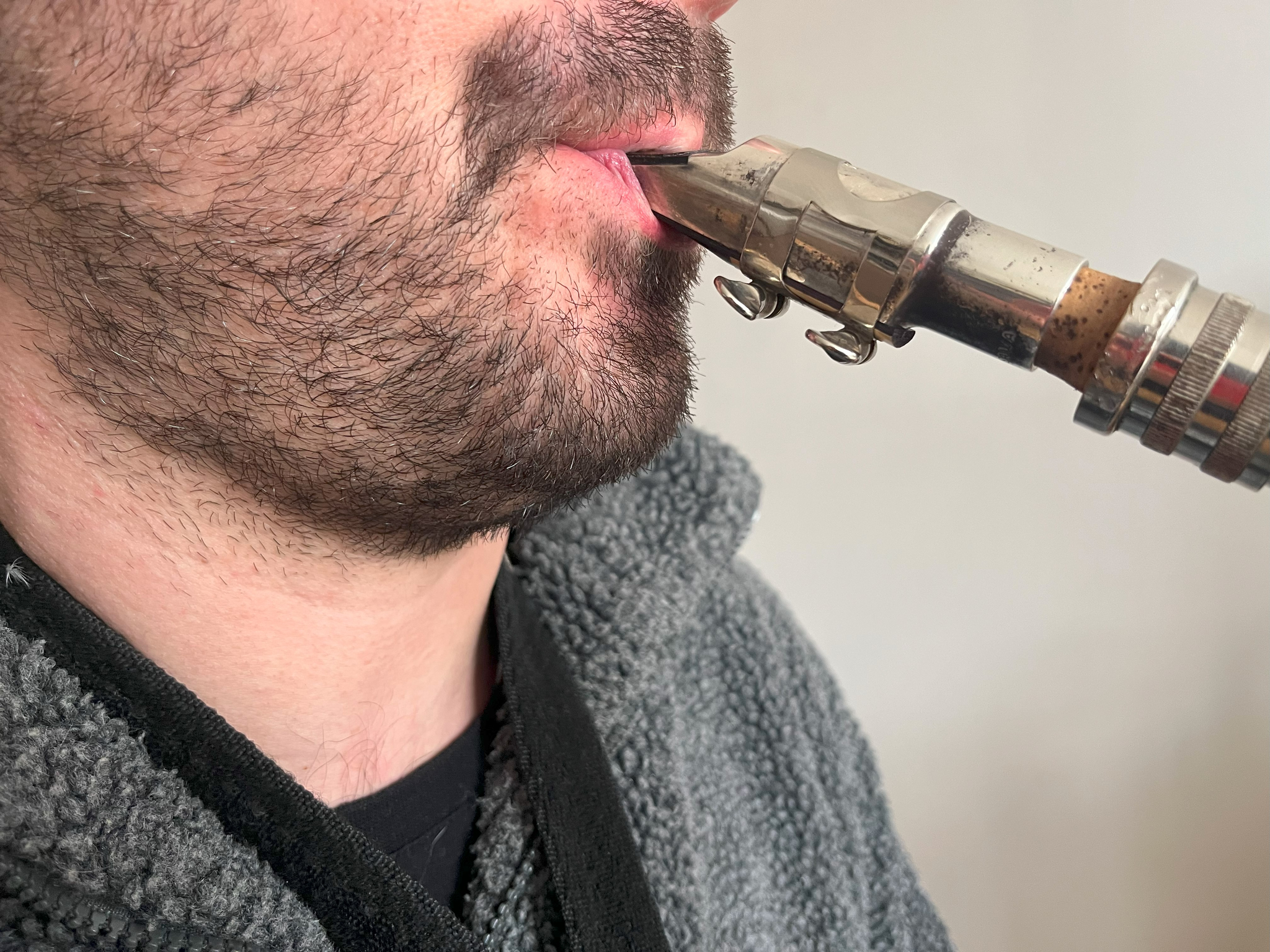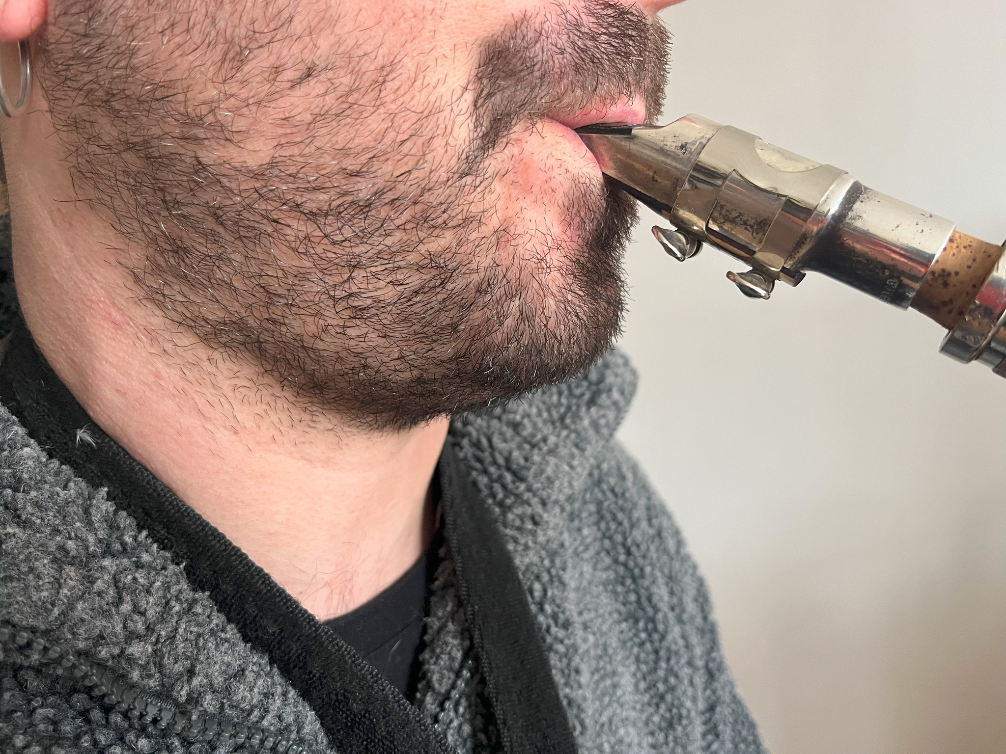 In my career as a saxophonist, I have played with different setups and materials (mouthpiece and reeds). However, the setup I have been using for the last few years is the one that allows me to achieve a sound similar to the zurna sound the most. In fact, I have been using a Yanagisawa metal mouthpiece with a tip opening 7. Metal mouthpieces are suitable for playing in ''f'' dynamics, have a lot of sound projection and are suitable for playing outdoors and with other loud instruments. In addition, a medium-high opening (7) also allows a high dynamic range, allows a wider vibrato and enables more control of the intonation with the bending technique. Fairly open mouthpieces are in fact more suitable, in my opinion, for achieving microtones.