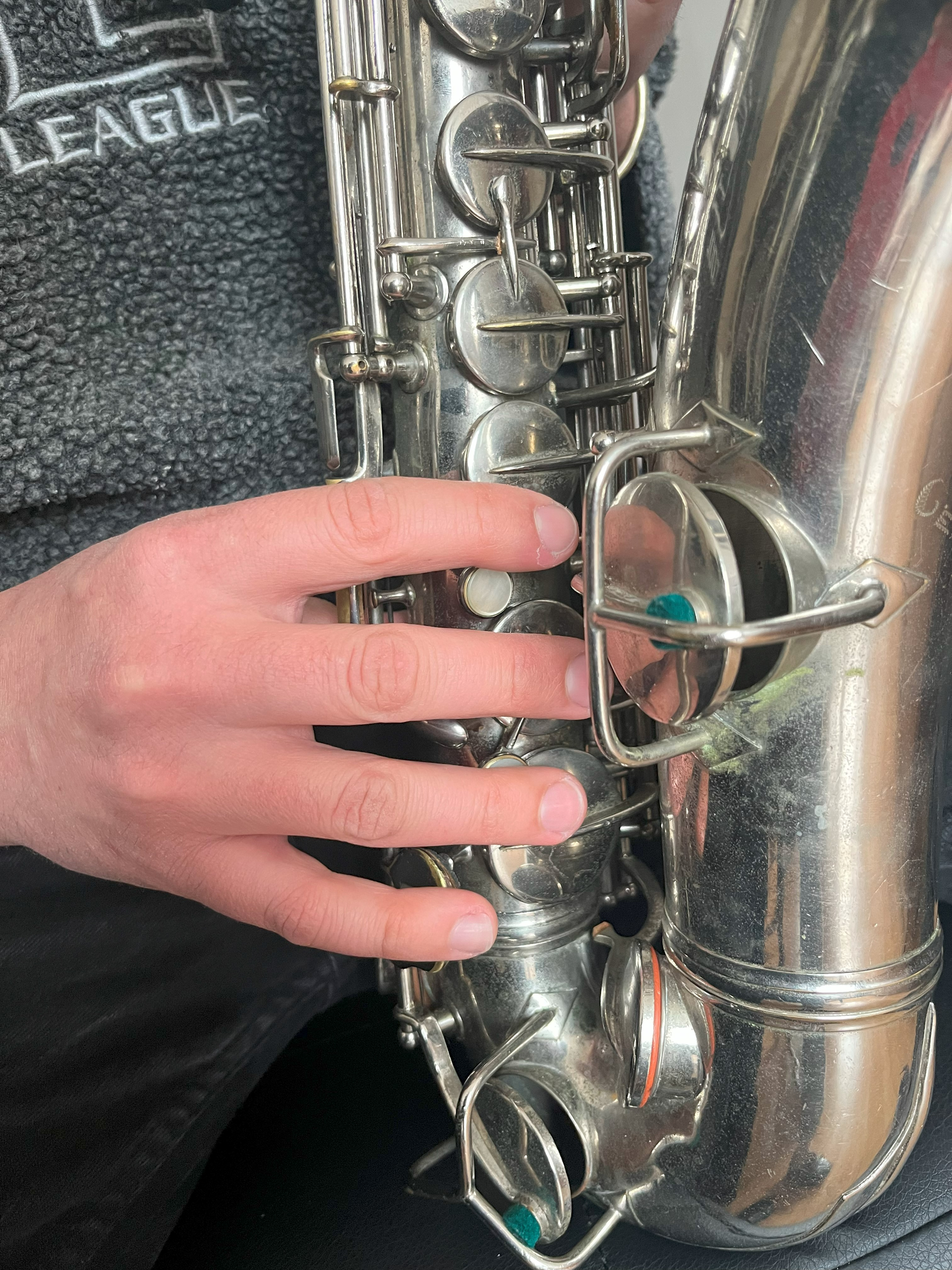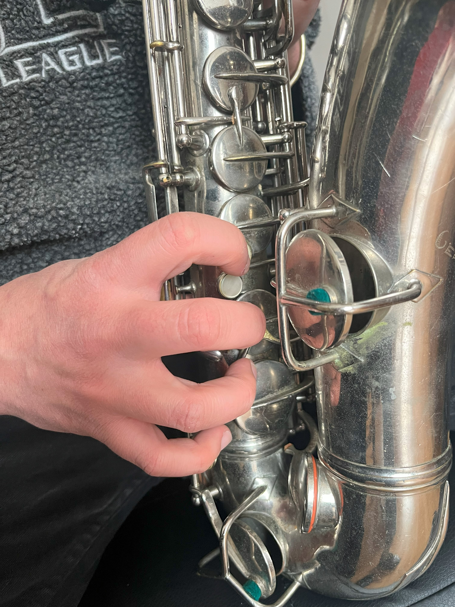 The position of the individual fingers over the keypads also has a great influence on the performance of fast ornaments. Tendentially, on the saxophone, the side of the finger resting on the keypad is the fingerprint side (Figure 4 left). During my study I sometimes found it useful to rest the tip of the finger on the keypad in order to have a faster and snappier action on the keys (Figure 4 right).