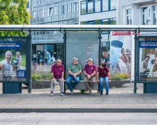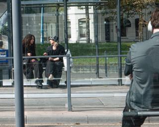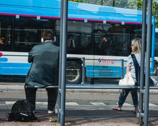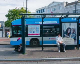 Ik ben op het Willemsplein in Arnhem geweest om foto’s te maken van mensen die wachten op de bus. Hierbij richtte ik me op de ruimte tussen onbekenden en hoe mensen zich positioneren in deze gedeelde, publieke omgeving.