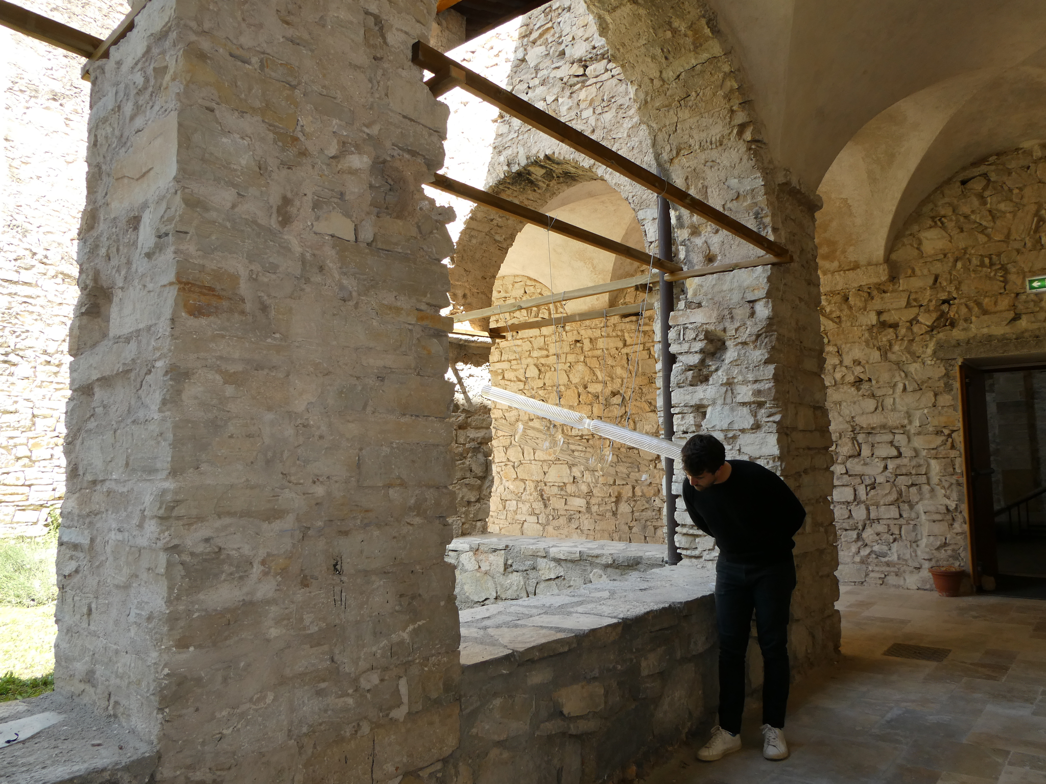 I play with architecture and ambient acoustics. I use the recesses, cavities and reflective walls of the cloister to amplify the sounds and enrich them, for example with reverberation, echoes, and counter-wall effects that the listeners-explorers can experience and recognize in two modalities, using both hearing and sight. In this way, they can experience the different tones and acoustic effects, and contemplate the inner workings of the sculpted volumes, comparing their shapes and forms.