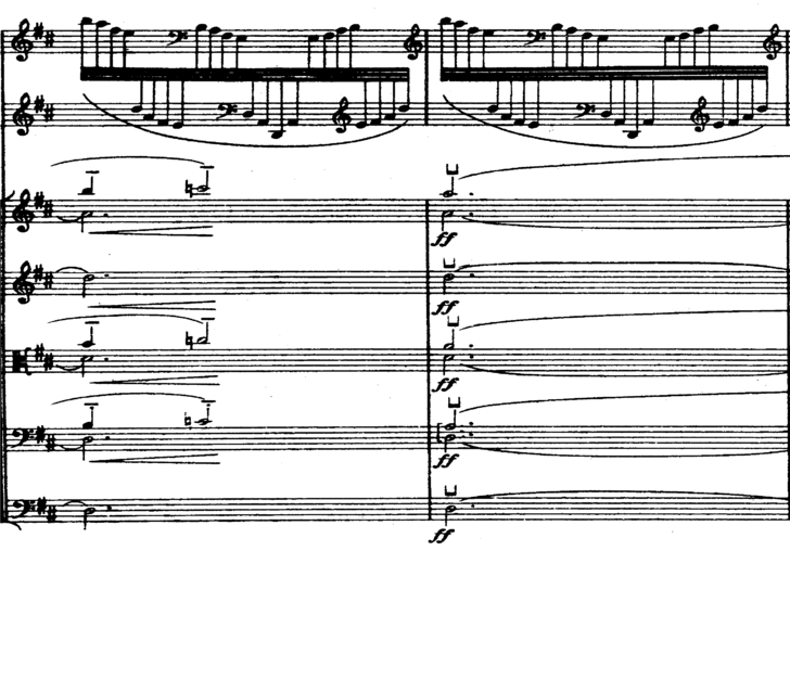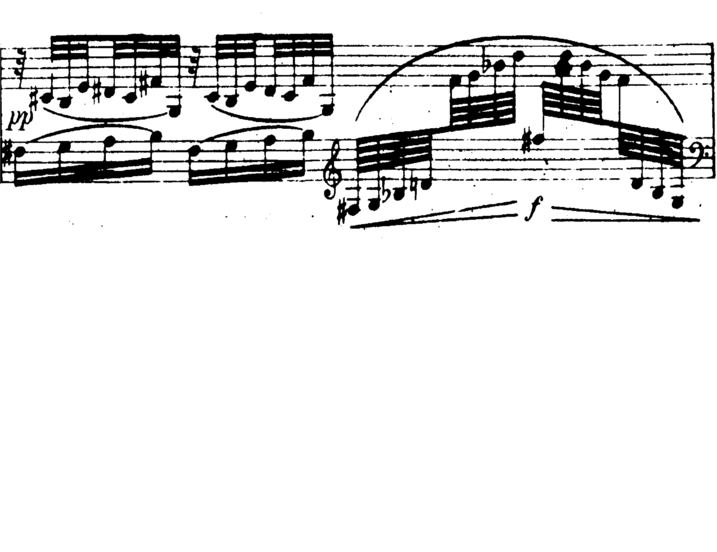 Score example 3: Falla, M. (1922). Nuits dans les jardins d´espagne. impresions symphoniques four piano et orchestre. Paris. Editions Max Eschig. First movement mm. 31